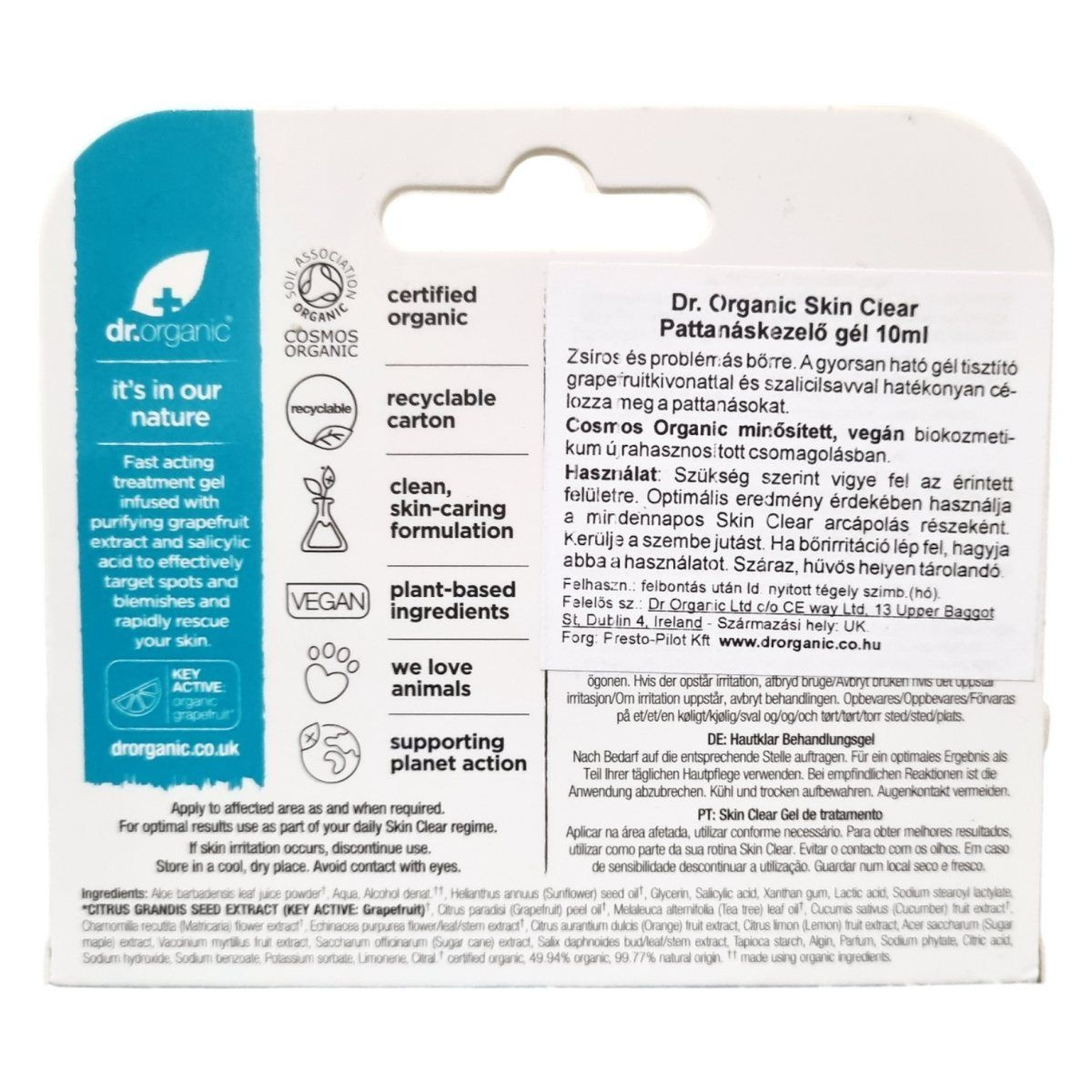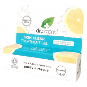 A Dr. Organic Skin Clear Pattanáskezelő gél természetes, bioaktív növényi kivonatok kombinációjával segíthet a zsíros, problémás bőr ápolásában. A grapefruit- és szalicilsav-tartalmú formula kíméletesen tisztít, miközben csökkentheti a pórusok eltömődését és a pattanások kialakulását. A kamilla, echinacea és borsmenta kivonatai nyugtató hatásúak lehetnek, támogatva a bőr megújulását és a tisztább, üdébb arcbőrt. Cosmos Organic minősítésű, vegán termék újrahasznosítható csomagolásban.