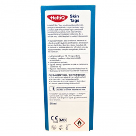A HeltiQ Skin Tags egy vény nélkül kapható orvostechnikai eszköz, amely a lógó szemölcsök eltávolítására szolgál krioterápiás módszerrel. A termék különösen a hónaljakban, a nyak területén vagy a mellek alatt elhelyezkedő fibrómák kezelésére ajánlott. A fibrómák bőrszínűek, puhák, fájdalommentesek és könnyen mozgathatók. A doboz tartalmaz egy 38 ml-es adagolót nem levehető, rögzített applikátor-kupakkal, 8 cserélhető fejet és 8 sebtapaszt. A termék használata előtt fontos elolvasni a használati utasítást.