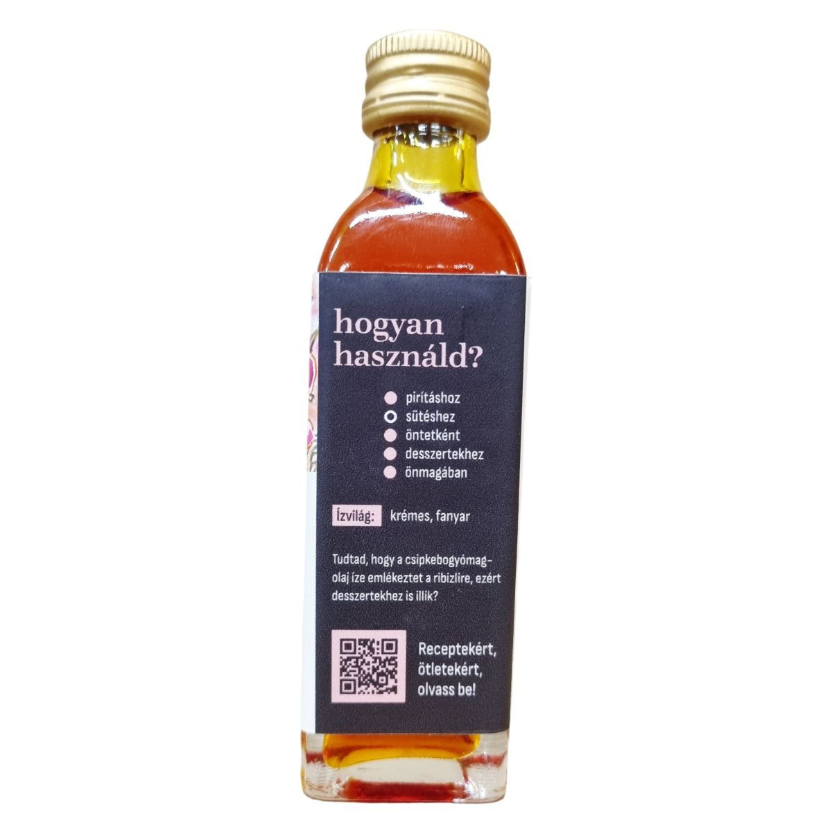 A hidegen sajtolt csipkebogyómag-olaj kellemesen krémes, fanyar ízű, mely különösen jól illik desszertekhez, de pirításhoz, sütéshez és öntetként is használható.