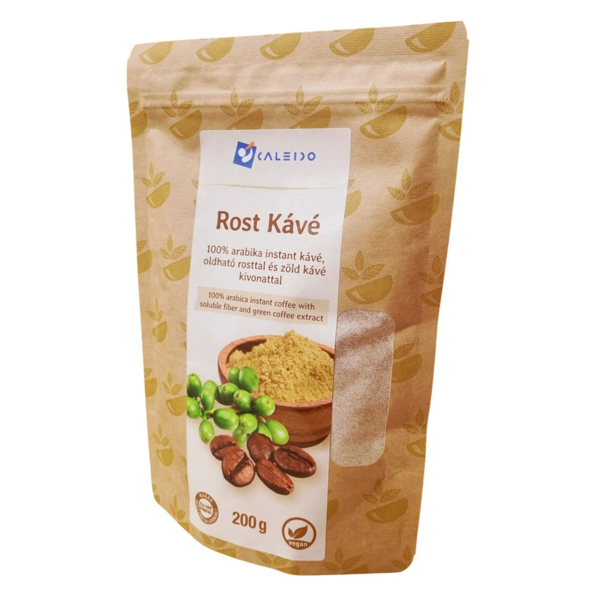 A Caleido Rost Kávé egy 100% arabika instant kávé, amely oldható rosttal és zöld kávé kivonattal gazdagított. A termék vegán, és 200 grammos kiszerelésben kapható.