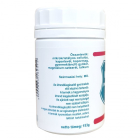 mikrokristályos cellulóz, kaporlevél, kapormag, gyermekláncfű gyökér, magnézium-sztearát, talkum