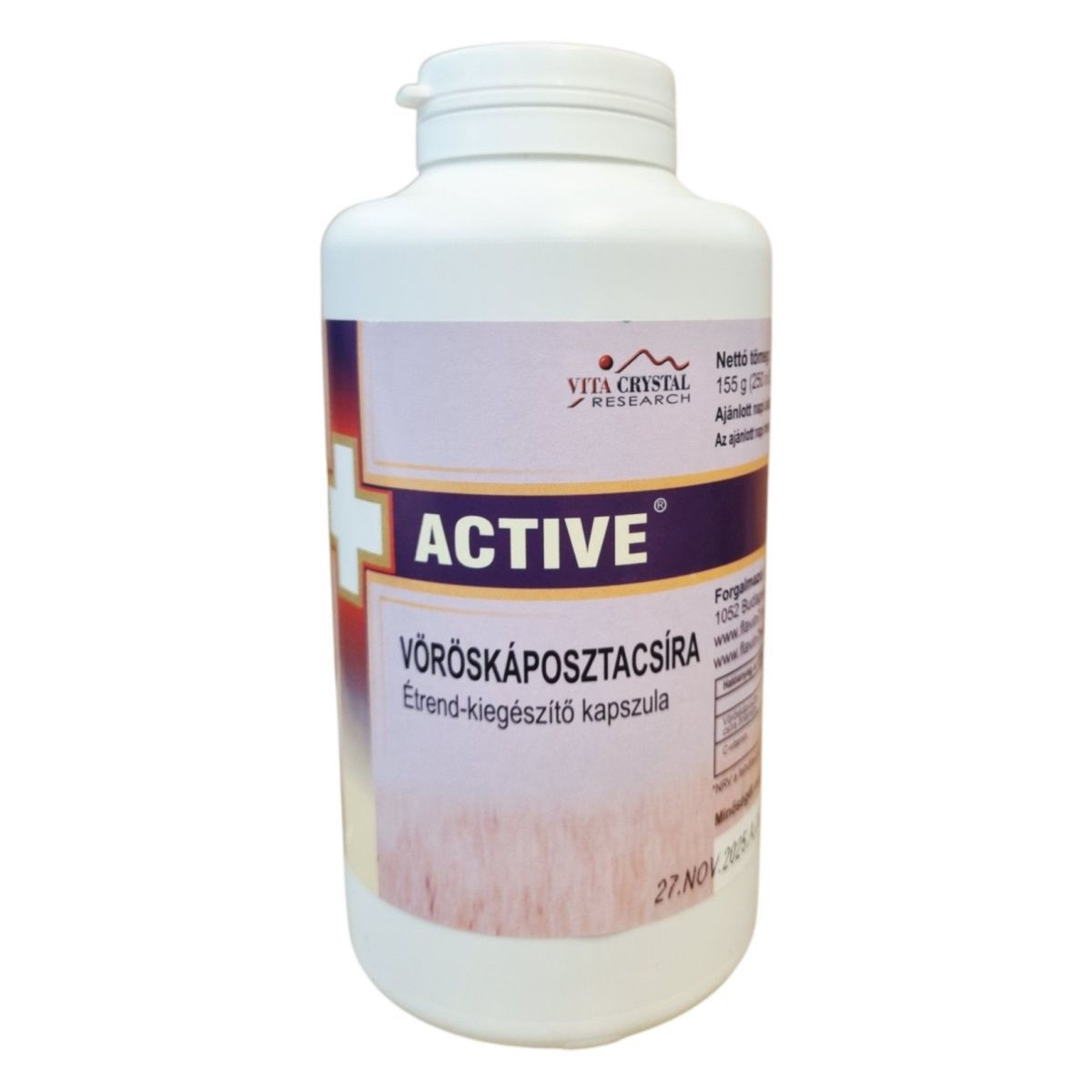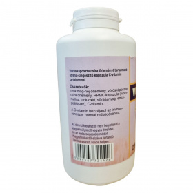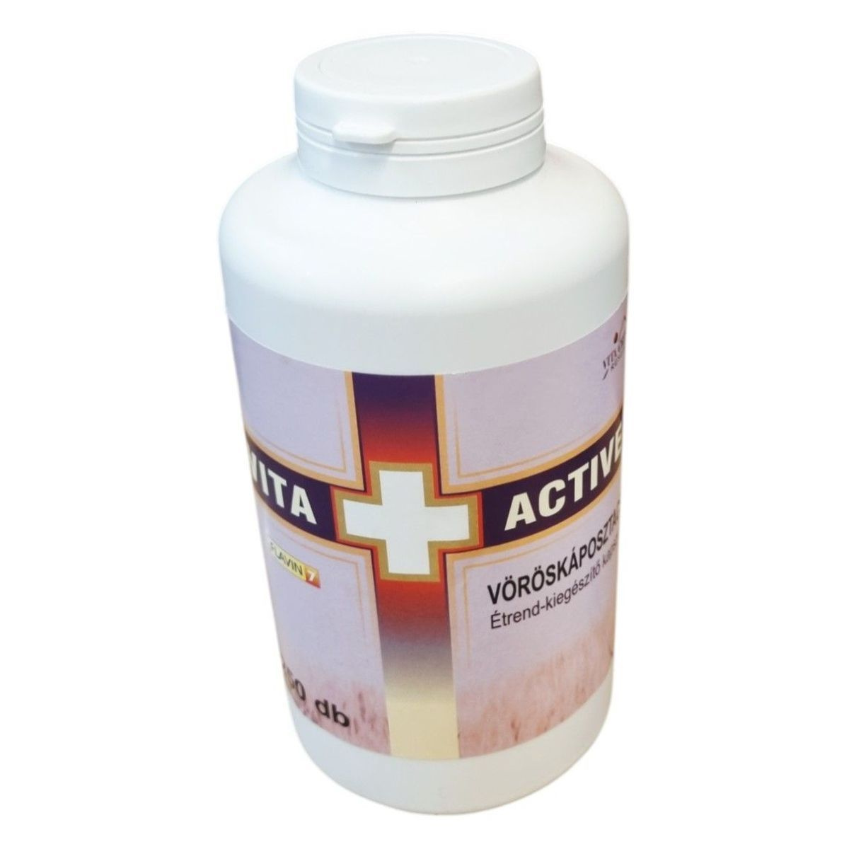 A VITA ACTIVE FLAVIN 7 VÖRÖSKÁPOSZTA étrend-kiegészítő kapszula vöröskáposzta-csíra őrleményt és C-vitamint tartalmaz, amelyek hozzájárulhatnak az immunrendszer normál működéséhez. A termék 250 kapszulát tartalmaz, és az ajánlott napi adag 3 x 1 kapszula. A termék forgalmazója a Slimbios Kft., és a kapszulák összetevői között megtalálható a cirok mag-héj őrlemény, valamint a HPMC kapszula, amely hipromellózt, cink-oxidot, sűrítőanyagot és emulgeálószert tartalmaz. Az étrend-kiegészítő nem helyettesíti a kiegyensúlyozott étrendet és az egészséges életmódot, és kisgyermekektől elzárva tartandó. Tárolása száraz, hűvös helyen javasolt.