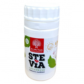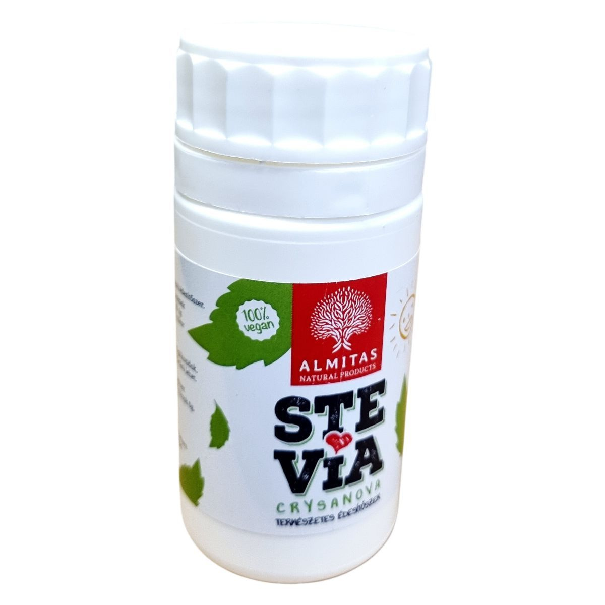 Az ALMITAS Stevia Crysanova egy természetes édesítőszer, amely eritritol és szteviol-glikozid alapú. Kiválóan alkalmas sütemények és krémek édesítésére, mivel egy lapos teáskanál por körülbelül 200g cukor édesítő hatásával egyenértékű. A termék bio és vegán étrendbe is beilleszthető, és kalóriamentes, így ideális választás fogyókúrákhoz és egészségtudatos életmódhoz. Fontos azonban figyelni a mértékletes fogyasztásra, mivel túlzott bevitele hashajtó hatású lehet. A terméket száraz, hűvös, fénytől védett helyen ajánlott tárolni.