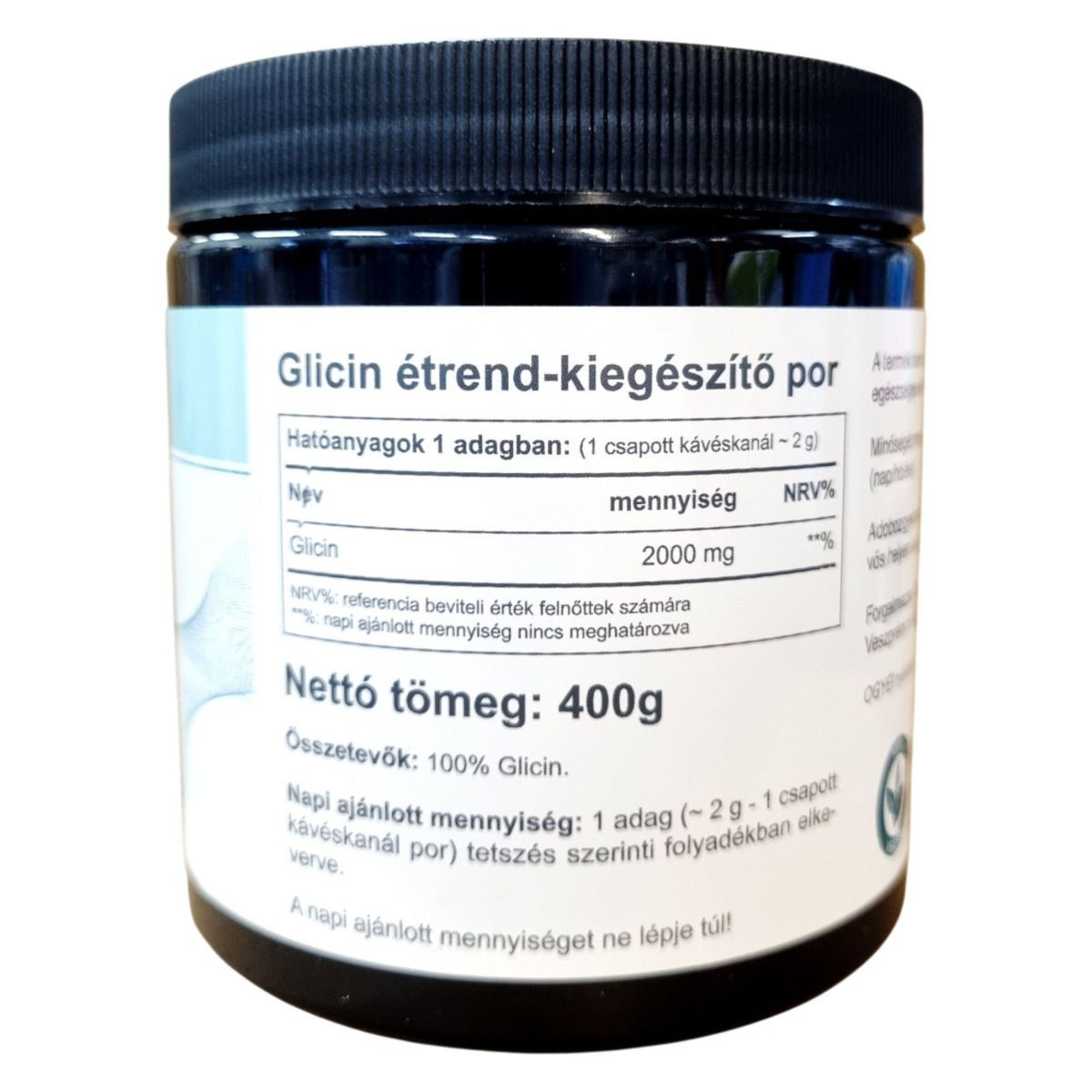 A Vitaking Glycine egy 100% tiszta glicin por, amelyet étrend-kiegészítőként kínálnak. A termék 400 grammos kiszerelésben érhető el, és napi ajánlott mennyisége 2 gramm, amelyet tetszés szerinti folyadékban lehet elkeverni. A glicin egy fontos aminosav, amely hozzájárulhat a szervezet különböző funkcióinak támogatásához. A termék vegán, paleo és ketogén étrendbe is beilleszthető. Fontos, hogy a napi ajánlott mennyiséget ne lépje túl, és a terméket gyermekek elől elzárva, száraz, hűvös helyen tárolja. Az OGYÉI nyilvántartási száma: 30971/2023.