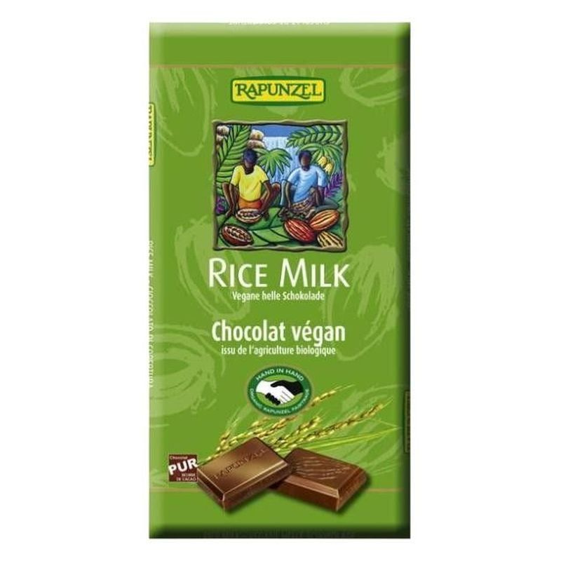 Rapunzel bio rizstejes csokoládé, vegán eredeti svájci csokoládé kakaótartalom: minimum 40%. Gluténmentes a csokoládéban lévő rizsszirup adja meg a terméknek a teljes tej jellegét. Ajánljuk mindazoknak, akik mindennemű állati eredetű összetevőtől le szeretnének mondani, ill. akik minden újdonságot szívesen kipróbálnak. Valamennyi összetevő ellenőrzött ökológiai gazdálkodásból.