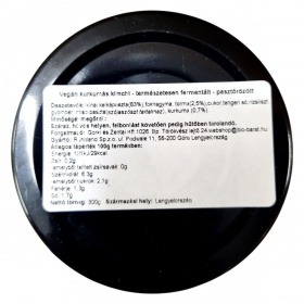 Vegán, természetesen fermentált, enyhén fűszeres kimchi kurkumával polgári eredettel, amely önálló fogásként vagy köretként is fogyasztható.