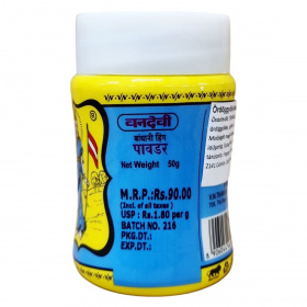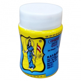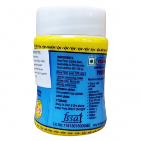 A termék 73% rizslisztet tartalmazó példány, amelynek összetevői között szerepel az arabgyanta, ördöggyökér és kurkumin is. Származási helye India, és kizárólag indiai ételek fűszerezésére ajánlott. A csomagolás feltünteti a nettó tömeget (50 g), a tételszámot és a csomagolás dátumát. A termék indiai gyártó licence alatt kerül forgalomba, kizárólag Indiában értékesíthető, nem exportálható.