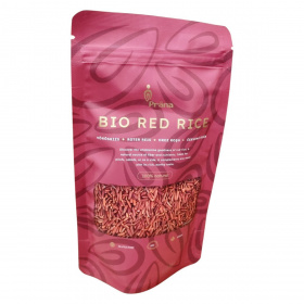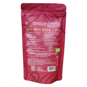 A vörös rizs különleges színét az antociánok adják, amelyek flavonszínező anyagokként antioxidáns hatásúak. Ezek az anyagok megtalálhatók többek között a vörösborban és számos gyümölcsben. Termékünk 100% bio vörös rizs Vietnámból származik, és az EU bio logóval ellátott. Bio minőségét a Bio-Garancia (HU-ÖKO-02) Kft. tanúsítja. A termék csomagolása sötét bordó színű, 250 grammos kiszerelésben kapható. A termék nyomokban földimogyorót, dióféléket és szezámmagot tartalmazhat, ezért az allergén információkat kérjük figyelembe venni.