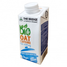 Ez a termék egy bio minősítésű, növényi eredetű főzőkrém, amely zab alapú és teljesen vegán. Az összetevők között szerepel a forrásvíz, zab, napraforgó olaj, tápióka keményítő, valamint természetes sűrítőanyagok, mint a szentjánoskenyérliszt és guargumi, valamint tengeri só. A termék carrageenan nélkül készül, és a Tetra Pak® csomagolás védi a minőségét. Felnyitás után hűtőben kell tárolni, és 3–4 napon belül el kell fogyasztani. A termék tartalmazhat szójamaradványokat, ezért allergiásoknak figyelmes használat javasolt.