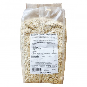 Világosbarnás, fehér gluténmentes bio zabpehely, hántolt, tisztított egész zabszemekből. Enyhén hőkezelt.