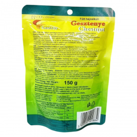 A csomagolás 100%-ban természetes, héj nélküli, főtt gesztenyét tartalmaz hozzáadott cukor nélkül.