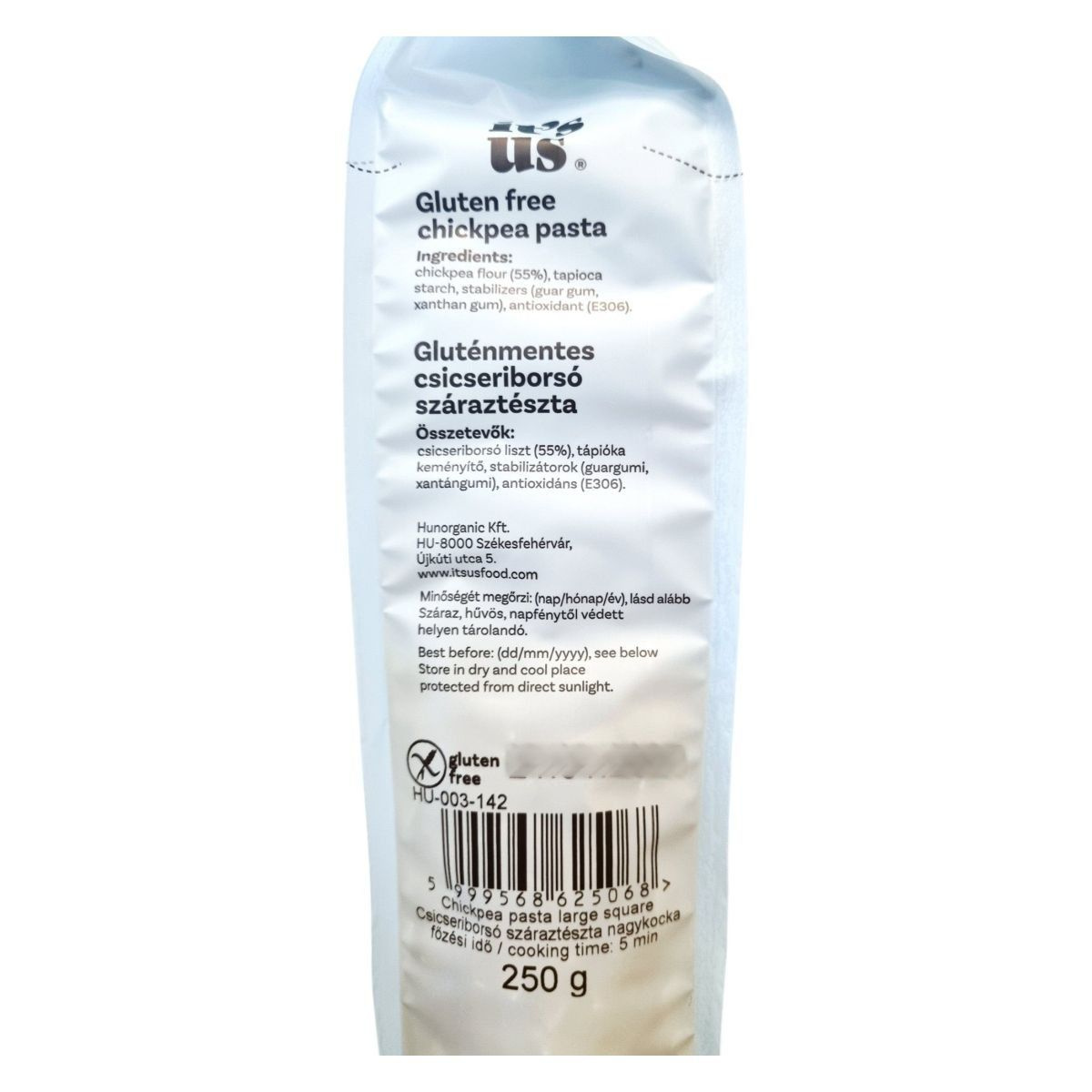 Gluténmentes nagykocka, csicseriborsó száraztészta.