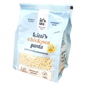 A Kitti’s Chickpea Pasta csicseriborsó alapú gluténmentes tészta, amely fehérjében és rostban gazdag, így kiválóan illeszkedik az egészséges életmódhoz. Növényi alapú összetétele miatt vegán étrendbe is beilleszthető, miközben könnyen emészthető és sokoldalúan felhasználható. Egyszerűen elkészíthető, jól tartja formáját, és természetes íze miatt különféle ételekhez illik. Az It’s Us márka Kitti kreatív receptjei alapján készült, a tudatos táplálkozás és a mentes élvezet jegyében.