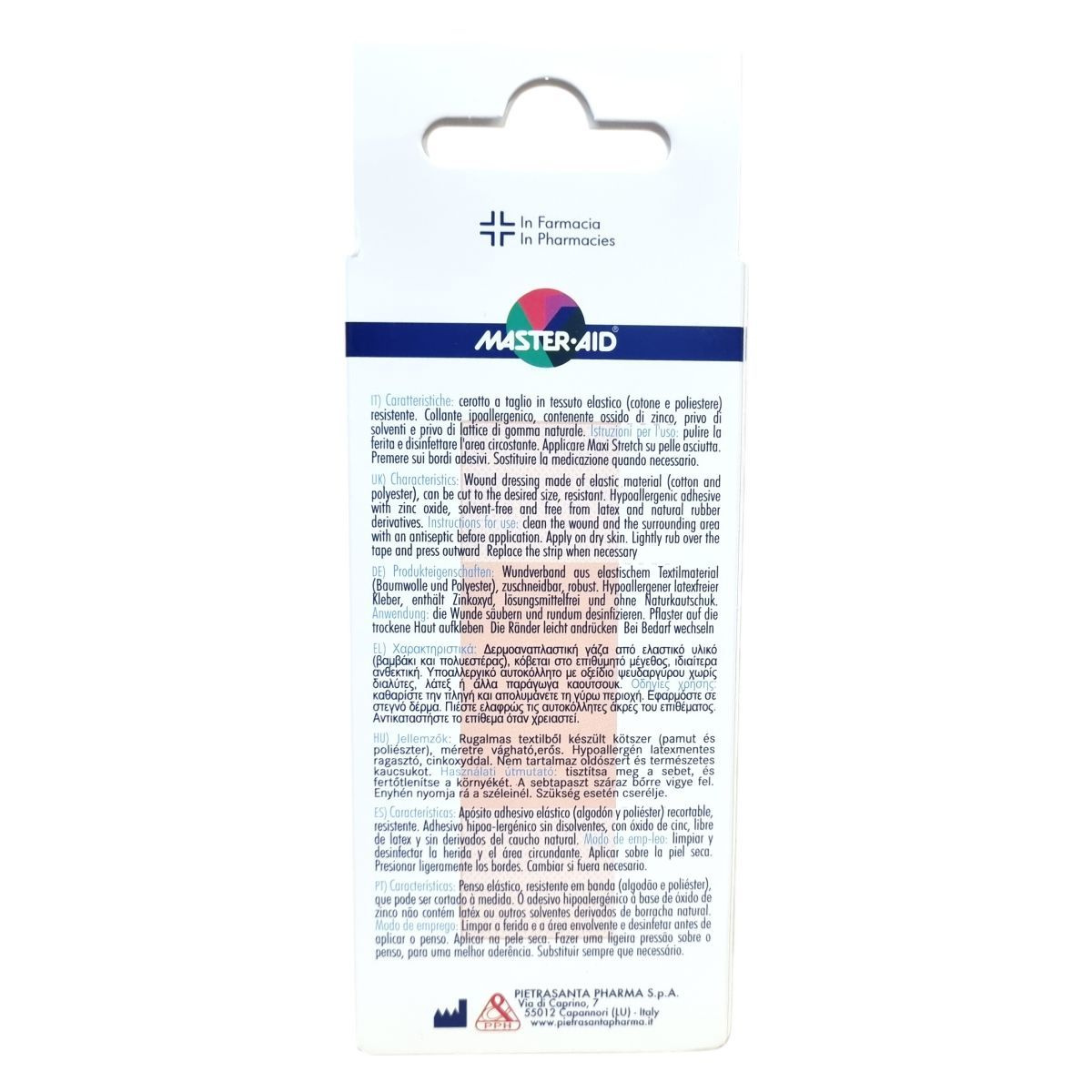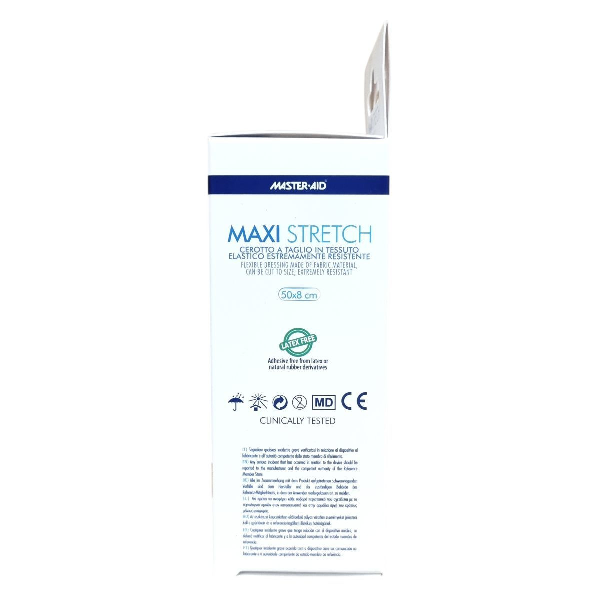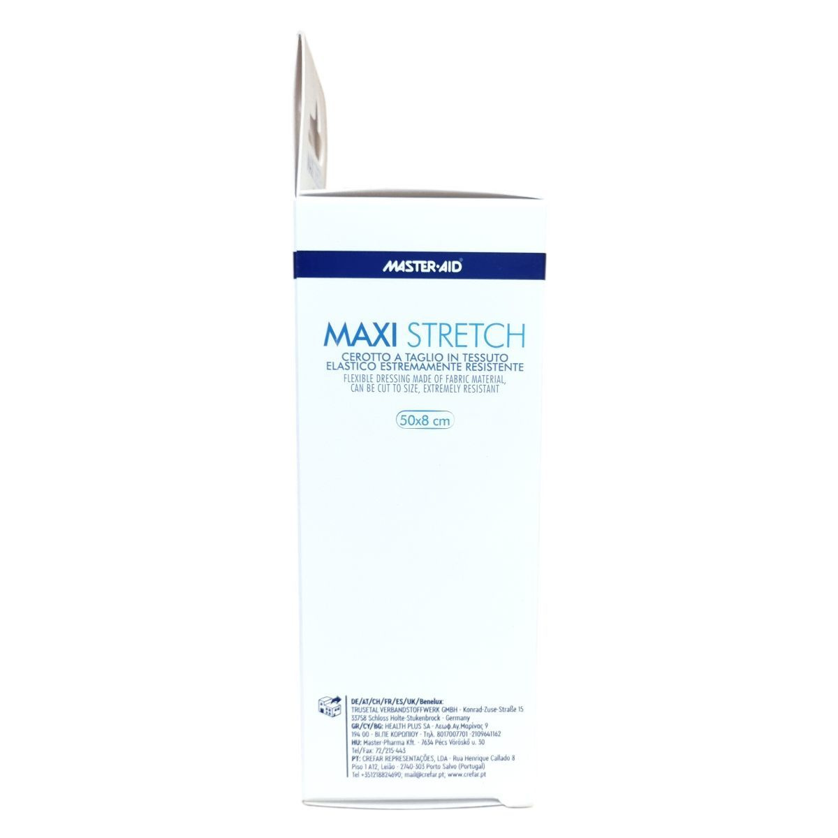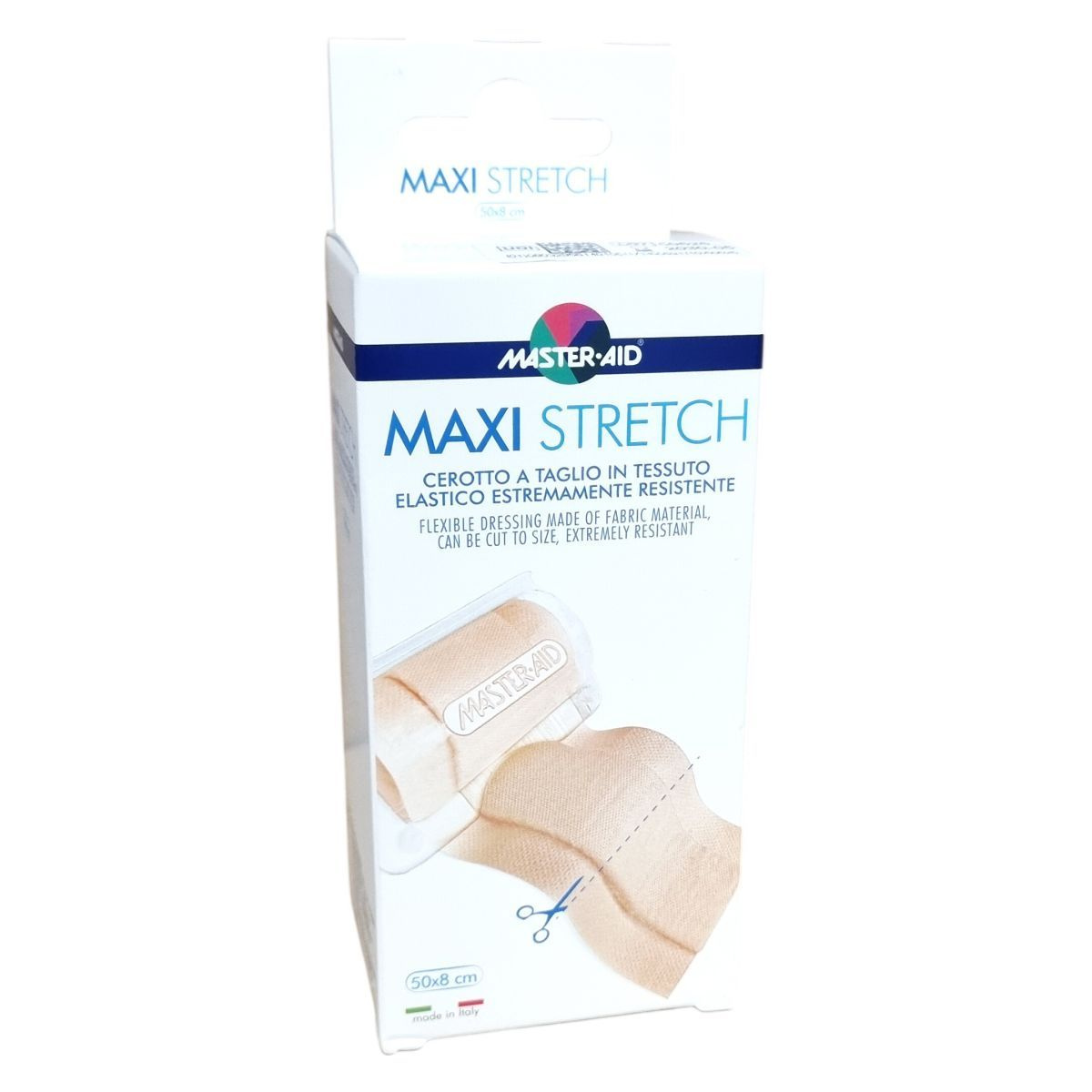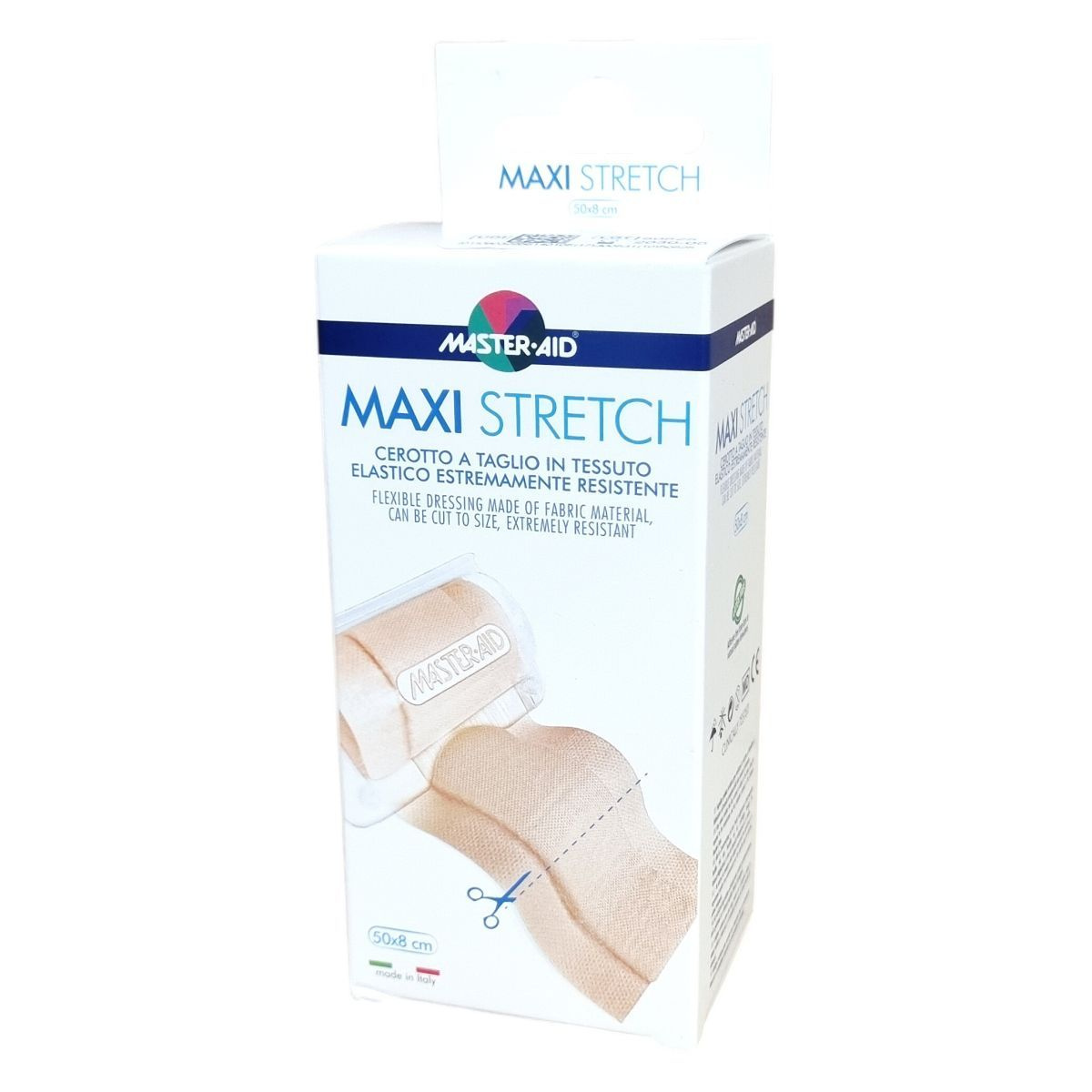A Master·Aid Maxi Stretch egy flexibilis sebtapasz, amely elasztikus pamut és poliészter anyagból készül, így méretre vágható és kivételesen tartós. A hipoallergén tapadóréteg cink-oxidot tartalmaz, oldószerektől és természetes kaucsuktól mentes, így csökkenti az allergiás reakciók kialakulásának esélyét. A használati utasítás szerint a sérült bőrfelületet előzetesen fertőtleníteni kell, majd a száraz bőrre felhelyezve a tapaszt enyhén a szélénél nyomjuk meg. Szükség esetén a tapaszt cserélni kell. A termék klinikailag tesztelt, latexmentes és megfelel az európai piac igényeinek, mely kiterjed Németországra, Ausztriára, Svájcra, Franciaországra, Spanyolországra, az Egyesült Királyságra, Benelux-országokra, Görögországra, Ciprusra, Bulgáriára, Magyarországra és Portugáliára is.