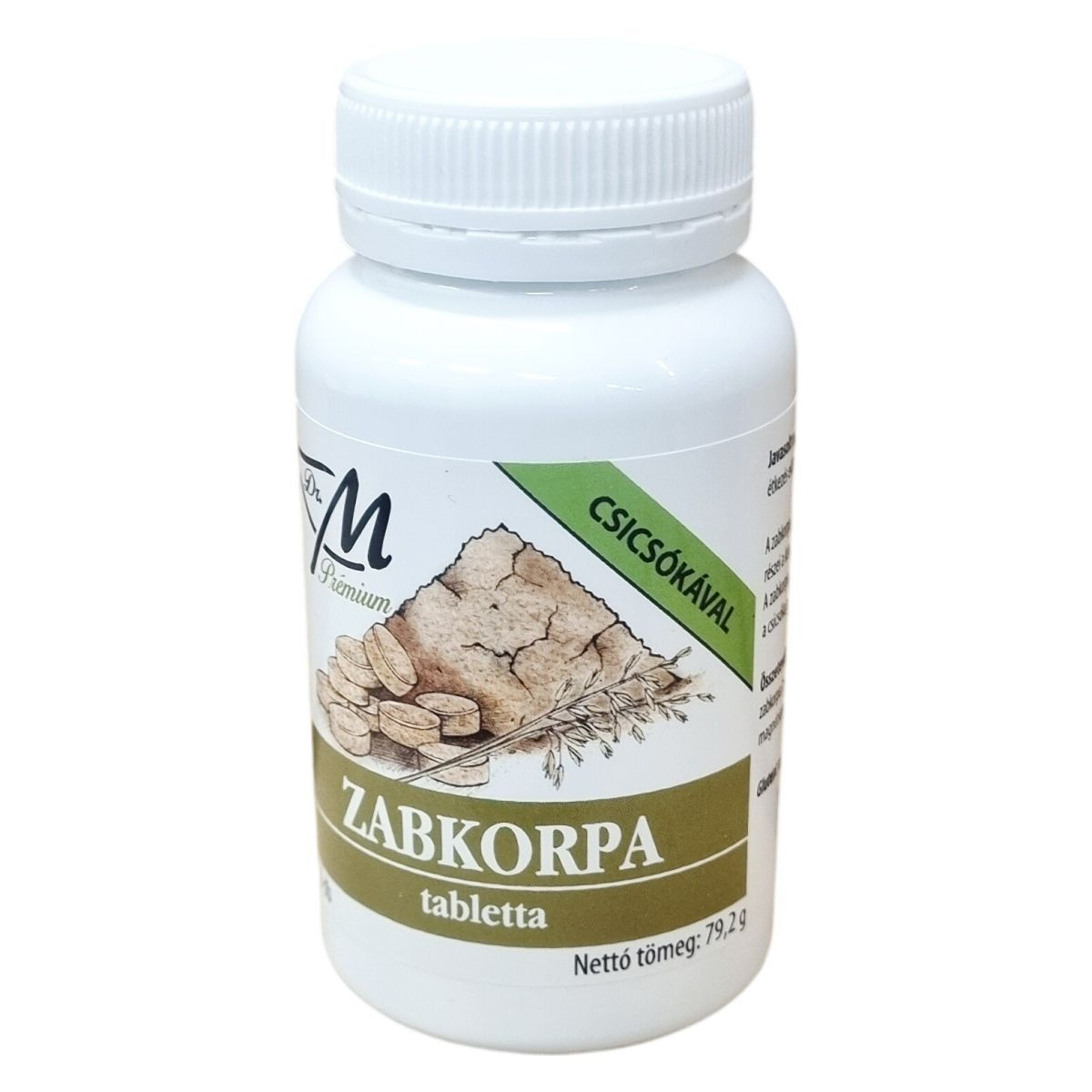 A Dr. M Prémium Csicsókával Zabkorpa tabletta 240 darabos kiszerelésben kerül forgalomba, nettó tömege 72 gram. A termék rostokban gazdag zabkorpát és csicsókaport tartalmaz, a zabkorpa rosttartalma 22%, míg a csicsóka por rosttartalma 60% az irodalmi adatok szerint. Összetevői között megtalálható továbbá mikrokristályos cellulóz és magnézium-sztearát csomósodás-gátlóként. A termék glutént tarthatalmazhat. Az ajánlott napi fogyasztás háromszor 4-5 tabletta, amit bő folyadékkal, étkezés előtt fél órával javasolt bevenni. A terméket a Volmix Kft. forgalmazza Budapesten.