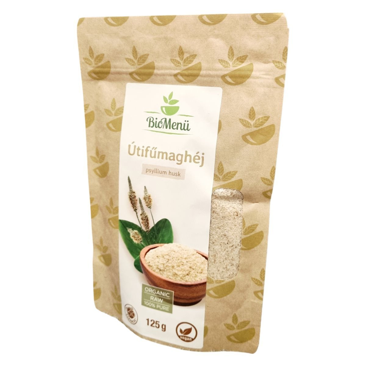A BioMenü bio útifűmaghéj India területéről származó alapanyagból készül. A termék 100%-ban organikus, nyers és tiszta, vegán étrendbe is beilleszthető. A csomagolás nettó tömege 125 gramm, amely 25 adagot tartalmaz. A magas rosttartalom miatt rendszeres fogyasztása segítheti a normál emésztési folyamatokat. A termékhez mellékelt tájékoztató kiemeli, hogy az útifűmaghéj táplálkozási tulajdonságai természetes eredetük miatt változhatnak környezeti feltételektől és időbeli tárolástól függően. A termék nem tartalmaz hozzáadott cukrot vagy sót, illetve allergén anyagokat nem jelöltek meg.