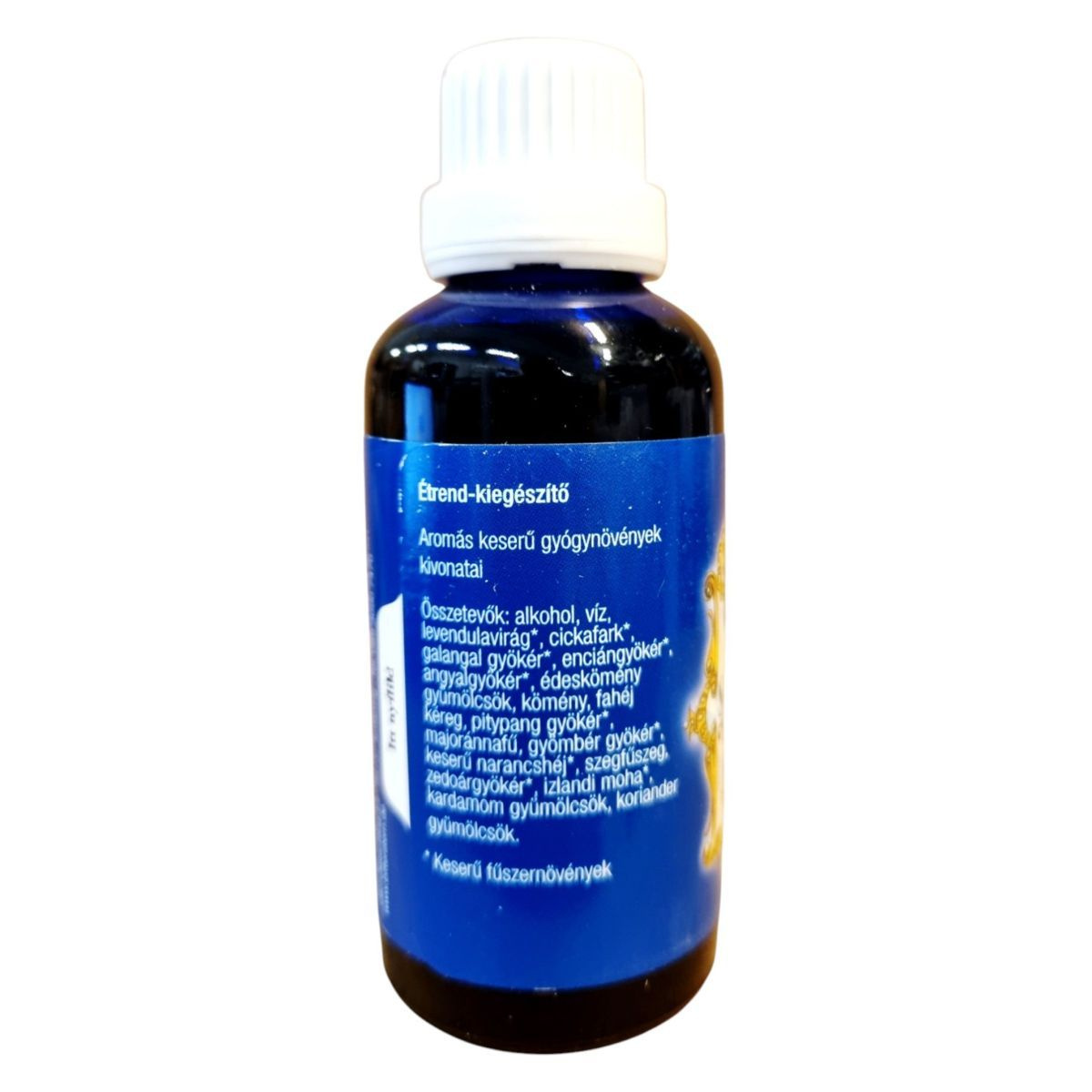 A Bitterstern étrend-kiegészítő aromás keserű gyógynövények kivonatait tartalmazza, amelyek hozzájárulhatnak az emésztés támogatásához és a jólét érzésének fokozásához. Az összetevők között megtalálható a levendulavirág, cickafark és galangal gyökér.