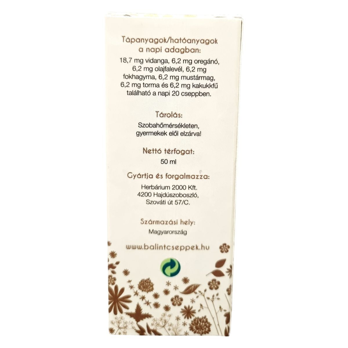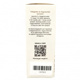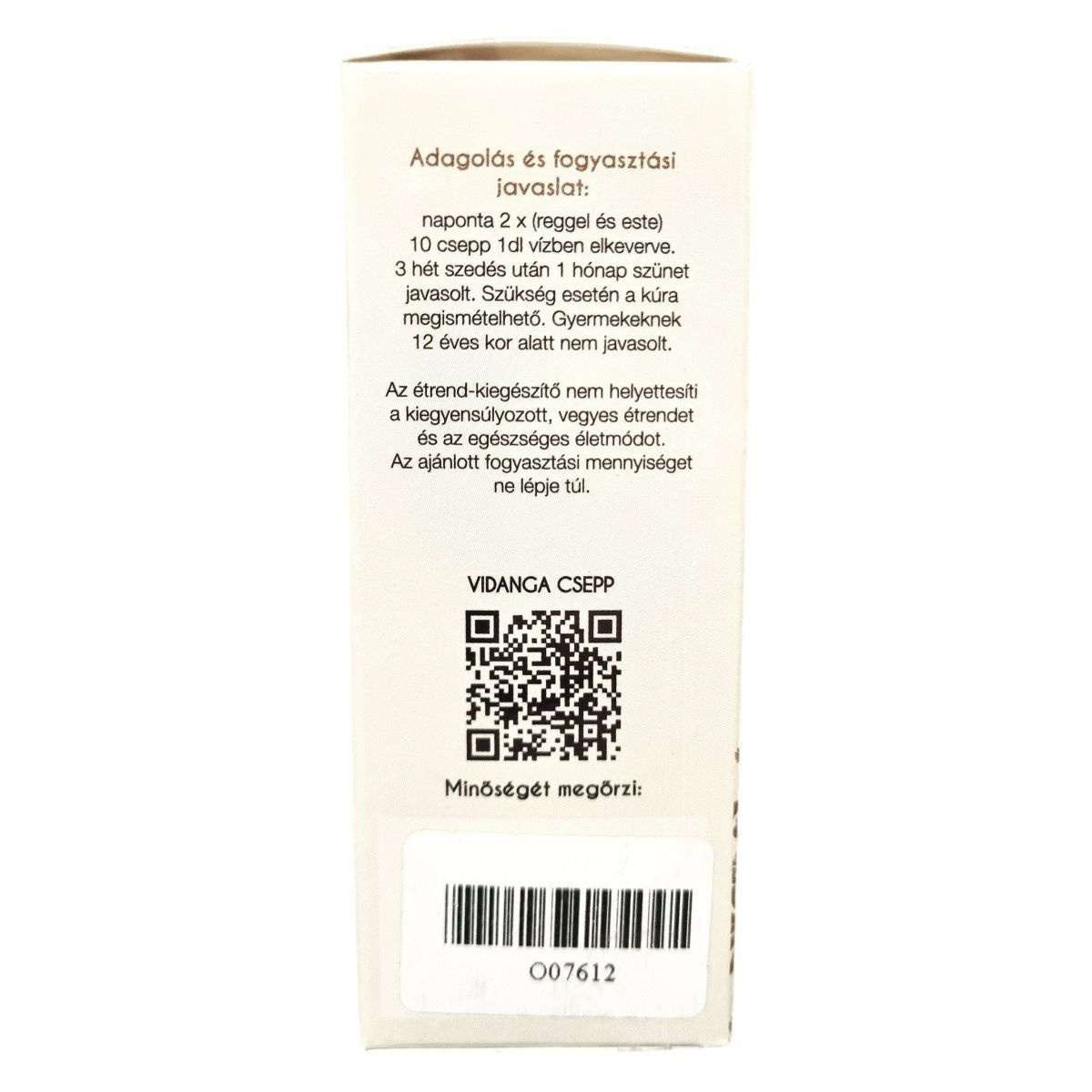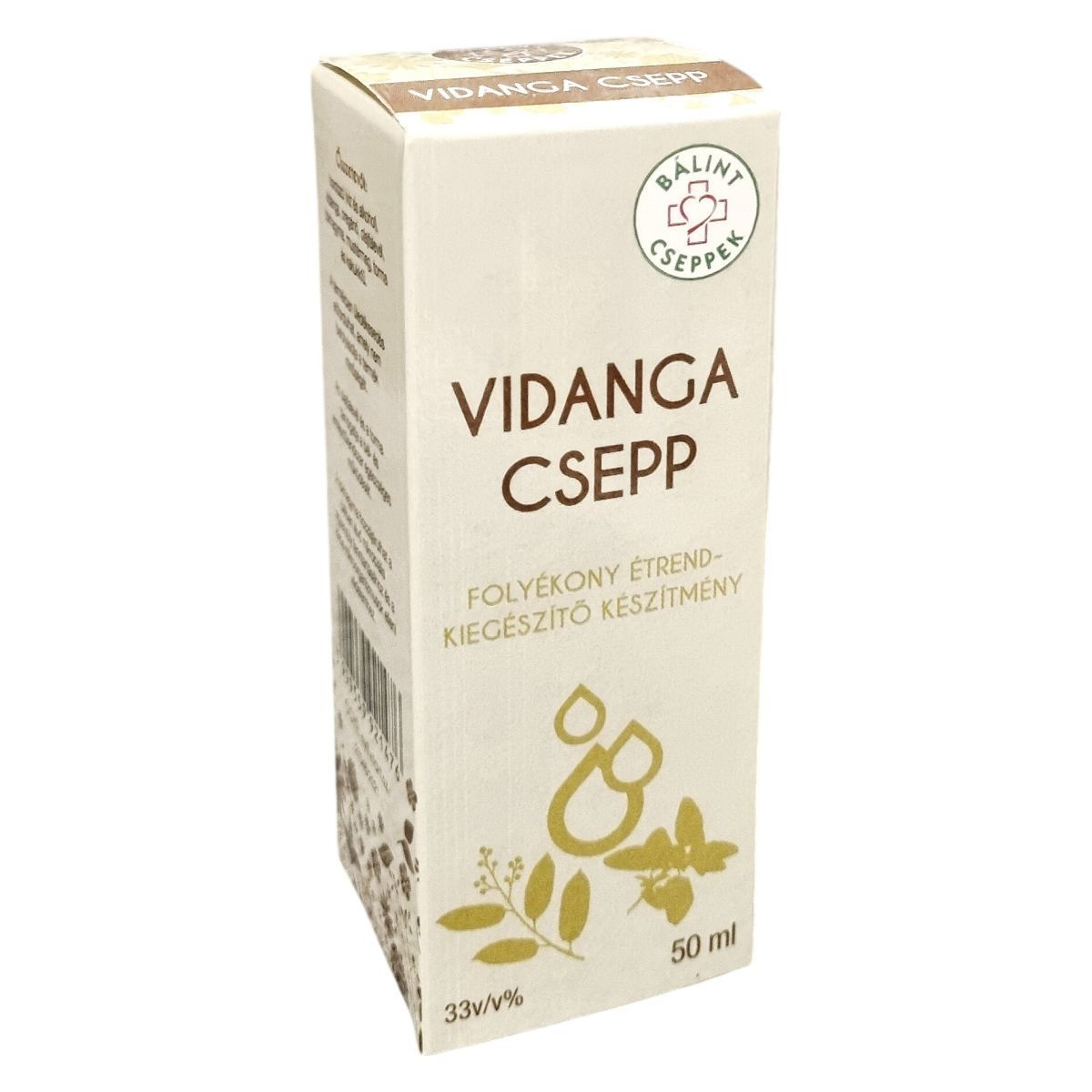 A Vidanga Csepp kiváló minőségű folyékony étrend-kiegészítő, amely 33v/v% alkoholt tartalmaz, és 50 ml-es kiszerelésben kapható. A készítmény több természetes összetevőt tartalmaz, mint például vidanga, oregánó, olajfalevél, fokhagyma, mustármag, torma és kakukkfű. Ezek az összetevők különböző mértékben támogathatják a bél- és emésztőrendszer egészséges működését, valamint hozzájárulhatnak a bélben lévő mikrobiális egyensúly fenntartásához és a káros mikroorganizmusok elleni védelemhez. A termékben előfordulhat üledékesedés, amely nem befolyásolja a minőséget. A fogyasztás javasolt módja napi kétszeri adagolás, 10 cseppként, 1 dl vízben elkeverve, melyet 3 hetes kúrák után 1 hónapos szünet kell követnie. A termék gyermekek számára 12 éves kor alatt nem ajánlott. A Vidanga Csepp Magyarországon készül és támogatja a kiegyensúlyozott étrend mellett az egészséges életmód kialakítását.