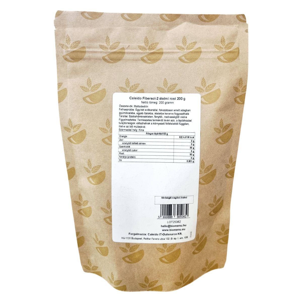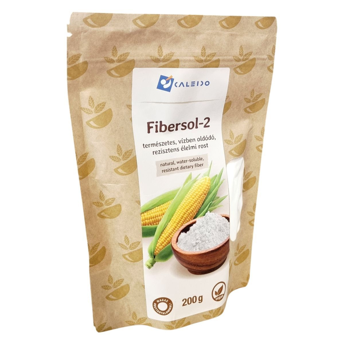 A Caleido Fibersol-2 termék egy természetes, rezisztens élelmi rost, amely vízben oldódó formában érhető el. Nettó tömege 200 gramm. Származási helye Kína. A termék magas rosttartalma miatt alkalmas rostban gazdag étrend kiegészítésére. Csak maltodextrint tartalmaz. A tárolás során ügyelni kell arra, hogy a termék szobahőmérsékleten, fénytől és nedvességtől védve maradjon. A termék vegán étrendbe illeszthető. A kalória- és tápérték adatok pontosan meghatározottak, tisztán 0 g zsírt és fehérjét, valamint jelentős rosttartalmat tartalmaz. A termékre vonatkozó figyelmeztetés figyelembe veszi, hogy a természetes eredetű összetevőkből fakadóan bizonyos tulajdonságok változhatnak a környezeti feltételek és az idő múlásának hatására.