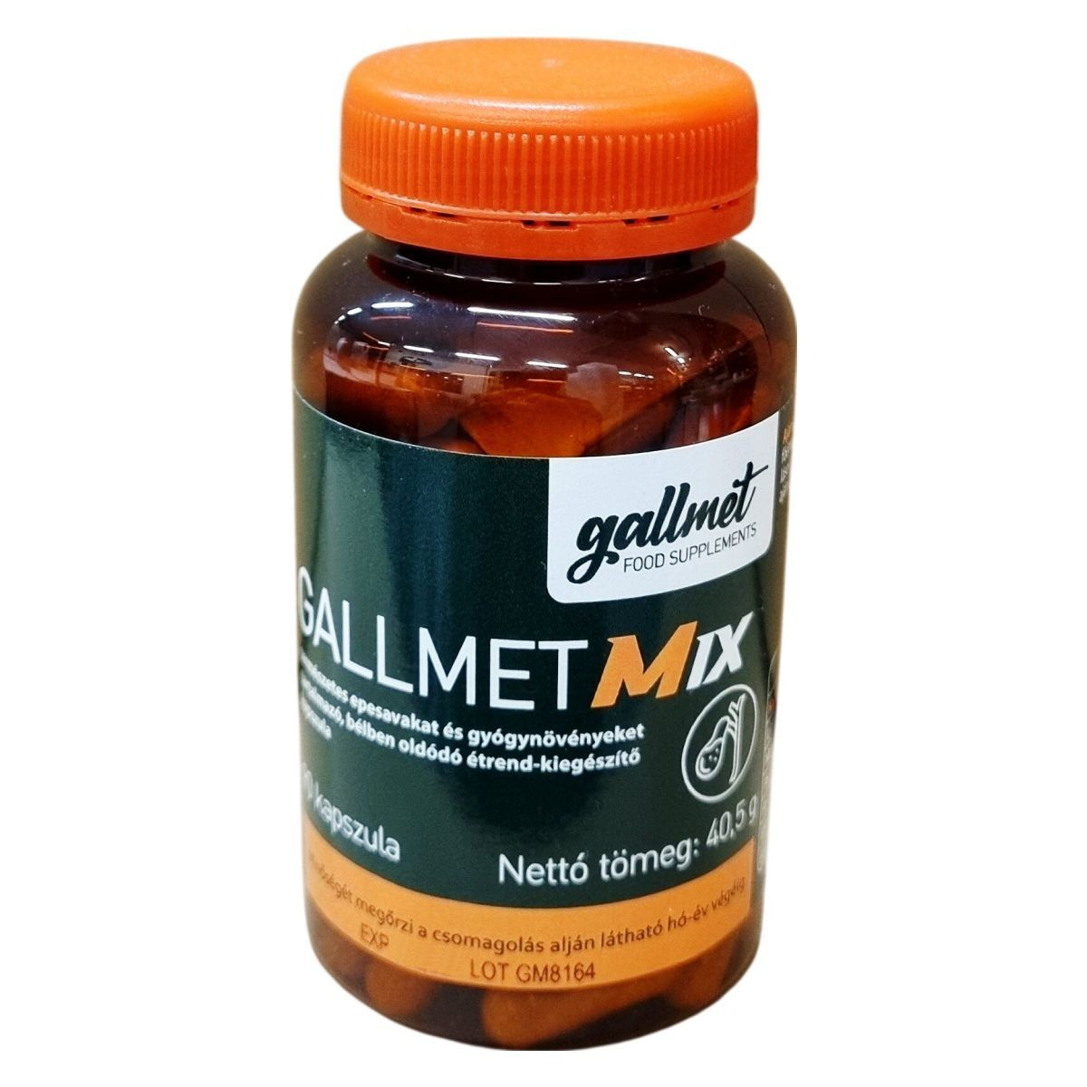 A Gallmet Mix egy természetes epesavakat és gyógynövényeket tartalmazó étrend-kiegészítő, amely bélben oldódó kapszulák formájában készül. Összetevői között szerepel liofilizált marha epe, valamint különböző gyógynövénykivonatok, mint mentalevél, pemetefű, fehérmályva gyökér, édesgyökér és édeskömény. Az ajánlott adagolás testtömeg és egyéni reakciók szerint változhat, ezt figyelembe kell venni a használat során. A termék nem alkalmazható akut epeproblémák, például eperoham vagy epevezeték-elfolyási akadály miatti sárgaság esetén, továbbá terhesség alatt kerülendő. A termék kizárólag az európai uniós szabályoknak megfelelő nyersanyagokat és összetevőket tartalmaz. A tárolás során figyelni kell arra, hogy a kapszulákat gyermekektől elzárva, hűvös helyen tartsuk. Az étrend-kiegészítő nem helyettesíti a változatos étrendet és az egészséges életmódot, csak kiegészítő jelleggel alkalmazható.