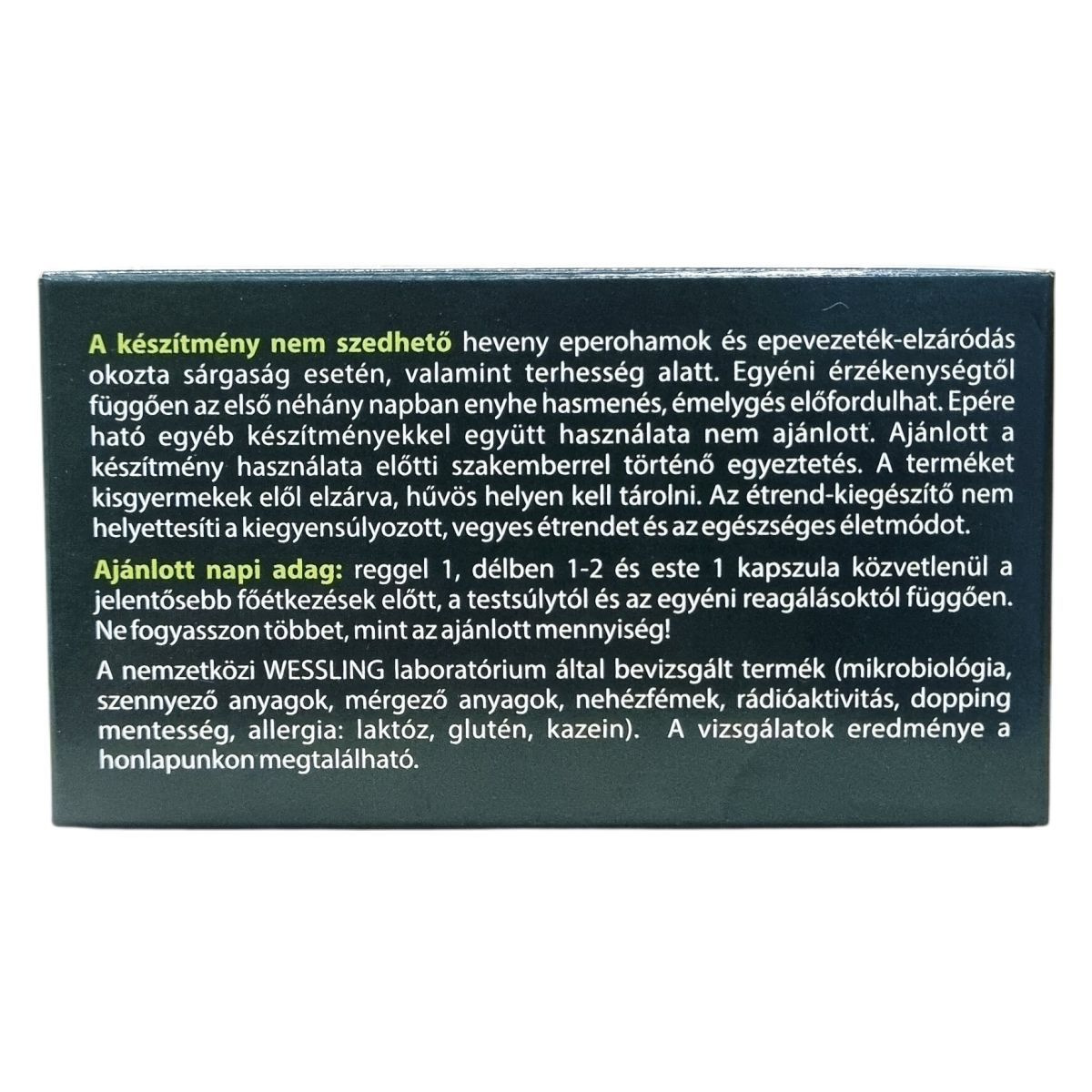 Természetes epesavakat tartalmazó, bélben oldódó étrend-kiegészítő kapszula.