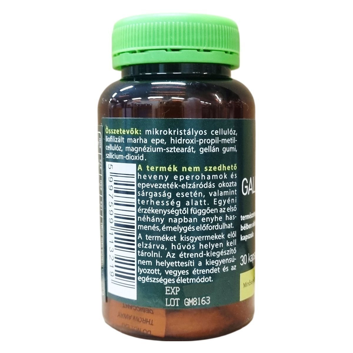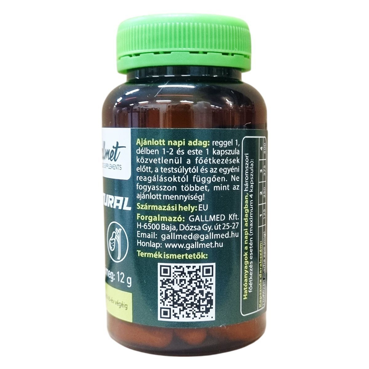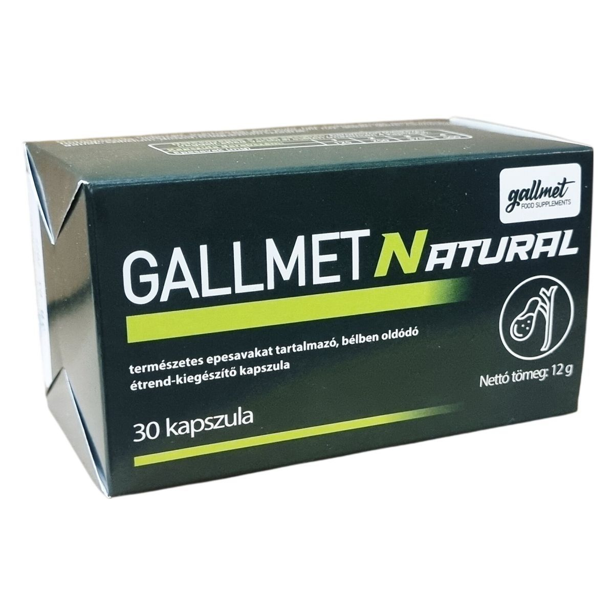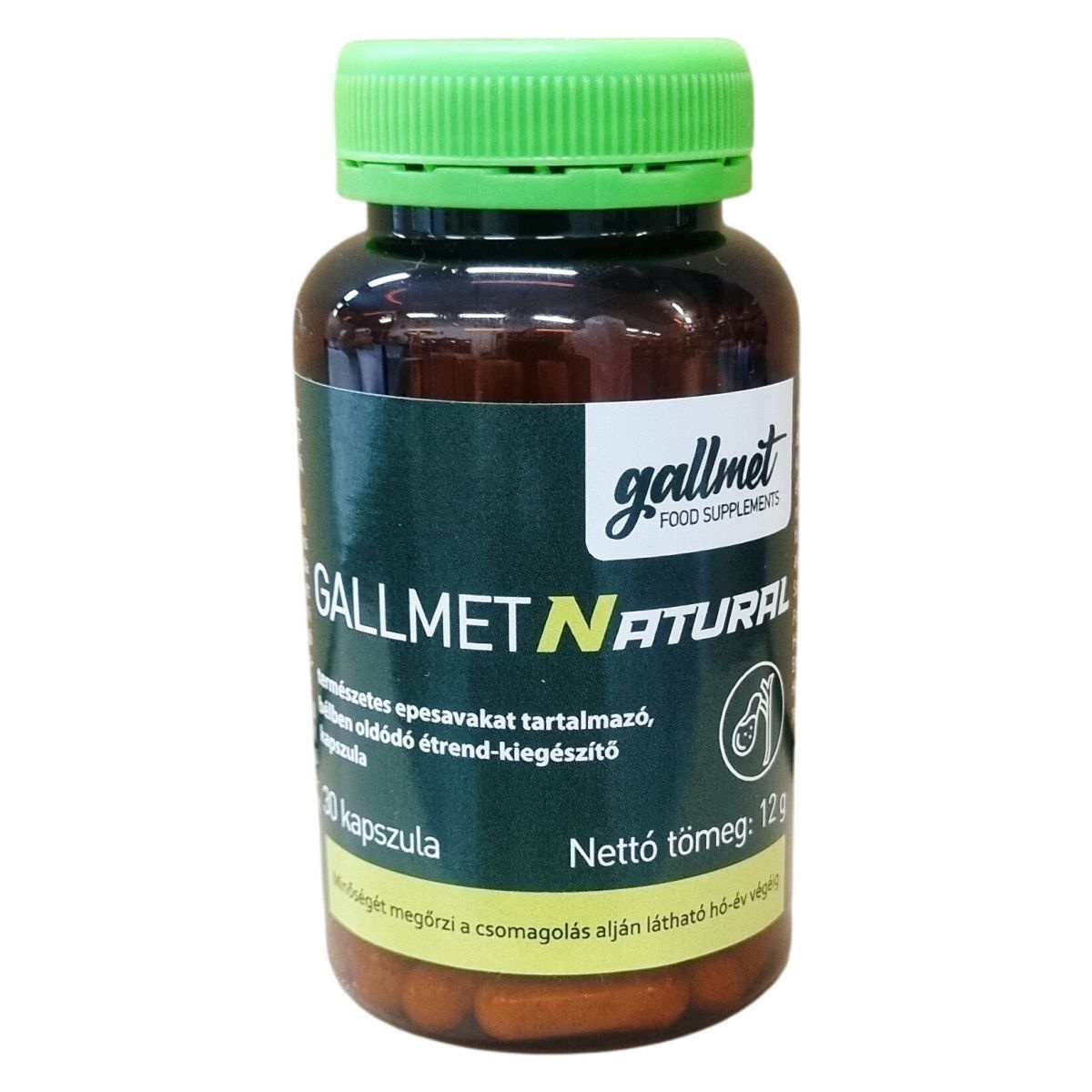A GALLMETNATURAL természetes epesavakat tartalmazó étrend-kiegészítő kapszula liofilizált marha epe kivonatot tartalmaz, mely bélben oldódó kapszula héjban található. Az ajánlott napi adag három részre osztva bevéve, segítheti a szervezet epesav-szintjének támogatását. A termék nem alkalmas heveny eperohamok vagy epevezeték-elzáródás okozta sárgaság kezelése alatt, illetve terhesség idején nem szedhető. Az egyéni érzékenység esetén az alkalmazás elején enyhe hasmenés vagy émelygés jelentkezhet. A készítmény használata előtt javasolt szakemberrel konzultálni, különösen, ha más epére ható készítményeket is szed. A termék minőségét nem befolyásolja a tárolás, ha azt kisgyermekektől elzárva, hűvös helyen tartják, és nem helyettesíti a kiegyensúlyozott, vegyes étrendet és az egészséges életmódot. A GALLMETNATURAL a nemzetközi WESSLING laboratórium által vizsgált termék, amelyet mikrobiológiai, szennyezőanyag-, mérgező anyag-, nehézfém-, rádióaktivitás-, dopping mentességi és allergén vizsgálatok alapján ellenőriztek.