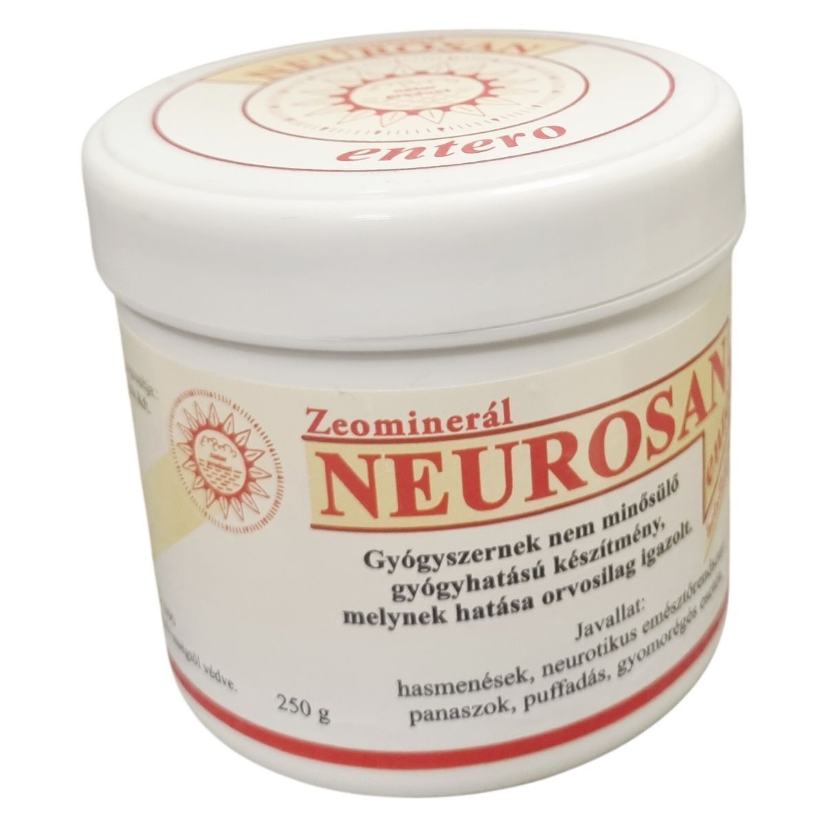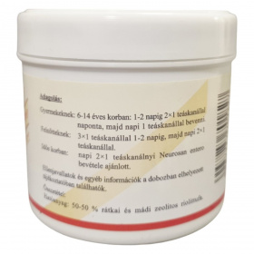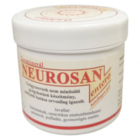 A Neurosan egy gyógyhatású készítmény, melynek alkalmazása hasmenés, neurotikus emésztőrendszeri panaszok, puffadás és gyomorégés esetén ajánlott. A termék 250 gramm kiszerelésben érhető el, és hatóanyagai között egyenlő arányban szerepel a rátkai és mádi zeolitos riolittufa. A pontos adagolási útmutató gyermekek, felnőttek és idősek számára is meg van határozva, részletesen megtalálható a dobozban. A készítmény hatása orvosilag igazolt, azonban ellenjavallatai és további információk szintén a termékhez mellékelt tájékoztatóban találhatók. Tárolását legfeljebb 25 Celsius-fokon, nedvességtől védve javasolt végezni.