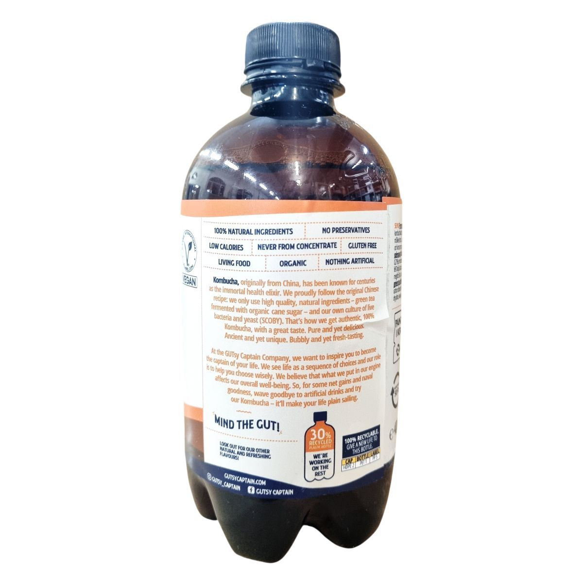A kombucha hagyományos fermentációval készül zöld teából, cukorból és élő baktérium- és élesztőkultúrákból. A gyömbér- és citromaroma friss, karakteres ízvilágot ad az italnak. A termék bio minősítésű összetevőket tartalmaz, tartósítószer-mentes, nem koncentrátumból készült.