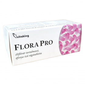 A Vitaking FLORA PRO rágótabletta egy áfonya ízű étrend-kiegészítő, amely különböző probiotikus törzseket tartalmazhat, mint például a Streptococcus thermophilus és a Lactobacillus rhamnosus. Az élőflórát tartalmazó tabletták édesítőszerrel készültek, és hozzájárulhatnak az emésztőrendszer egészségéhez. A termék 60 tablettát tartalmaz, és napi 1-3 tabletta fogyasztása ajánlott. Fontos, hogy a terméket gyermekek elől elzárva, száraz, hűvös helyen tároljuk. A termék forgalmazója a Vitaking Kft., és az OGYÉI nyilvántartási száma 31000/2023.