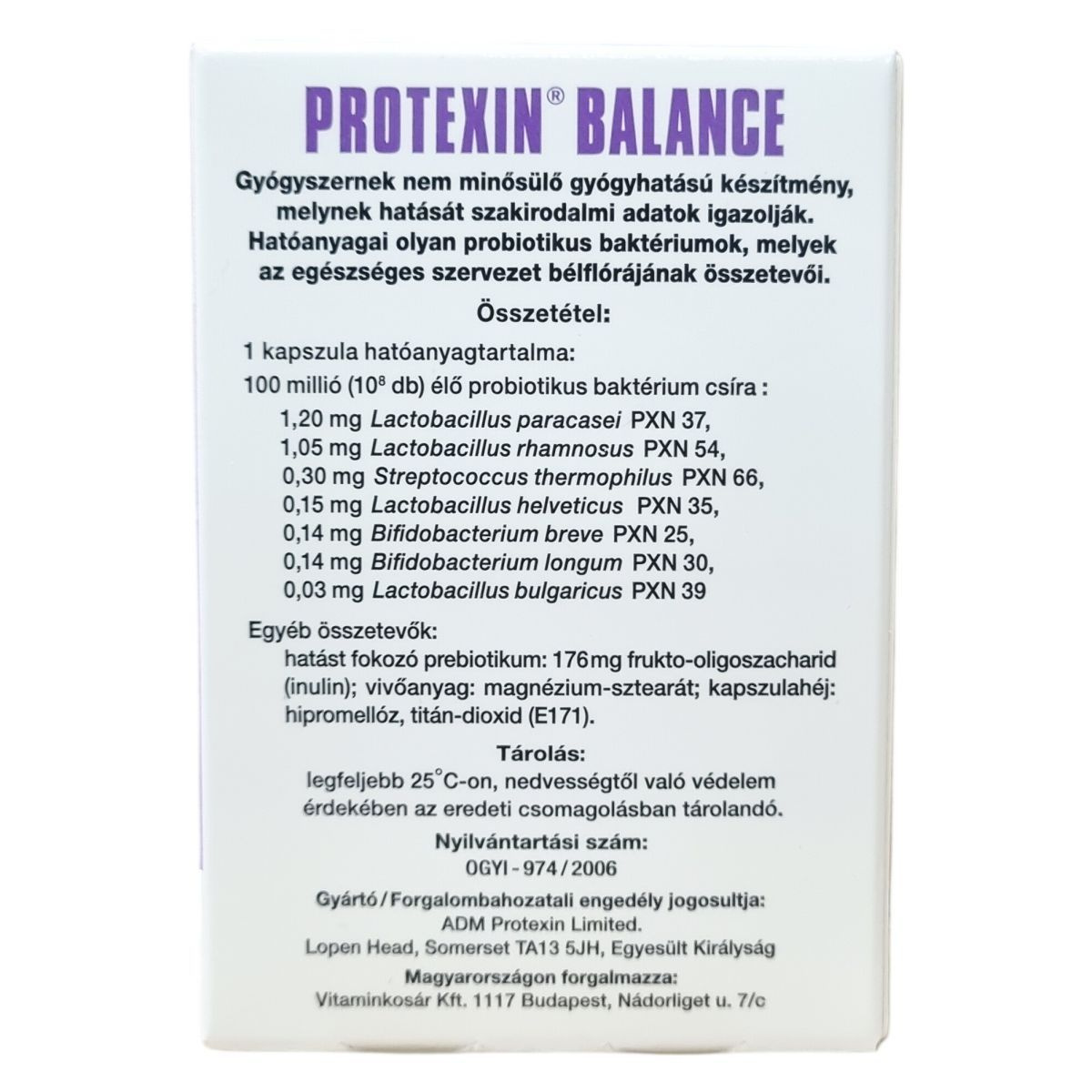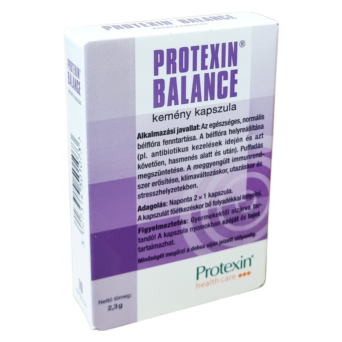A Protexin® Balance kemény kapszula gyógyszernek nem minősülő gyógyhatású készítmény, amelynek hatását szakirodalmi adatok igazolják. Hatóanyagai olyan probiotikus baktériumok, amelyek az egészséges szervezet bélflórájának alkotórészei. A készítmény alkalmas lehet a bélflóra helyreállítására antibiotikus kezelések idején és azt követően, illetve hasmenés alatt és után. Továbbá segítheti a puffadás megszüntetését, valamint támogatást nyújthat a meggyengült immunrendszer erősítésében klímaváltozáskor, utazáskor és stresszhelyzetekben. A termék összetevői között szerepel egy hatást fokozó prebiotikum, a frukto-oligoszacharid (inulin), amely elősegítheti a probiotikumok hatékonyságát. A kapszula kapszulahéja hipromellózból készül, tartalmazhat titán-dioxidot (E171). A termék nettó tömege 2,3 gramm, és 10 kapszulát tartalmazó kiszerelésben kerül forgalomba. Az adagolás naponta kétszer egy kapszula, amelyet főétkezéskor, bő folyadékkal kell bevenni. A készítményt 25°C alatt, nedvességtől védett helyen, az eredeti csomagolásban ajánlott tárolni. Gyermekektől elzárva tartandó, és nyomokban szóját és tejet tartalmazhat.