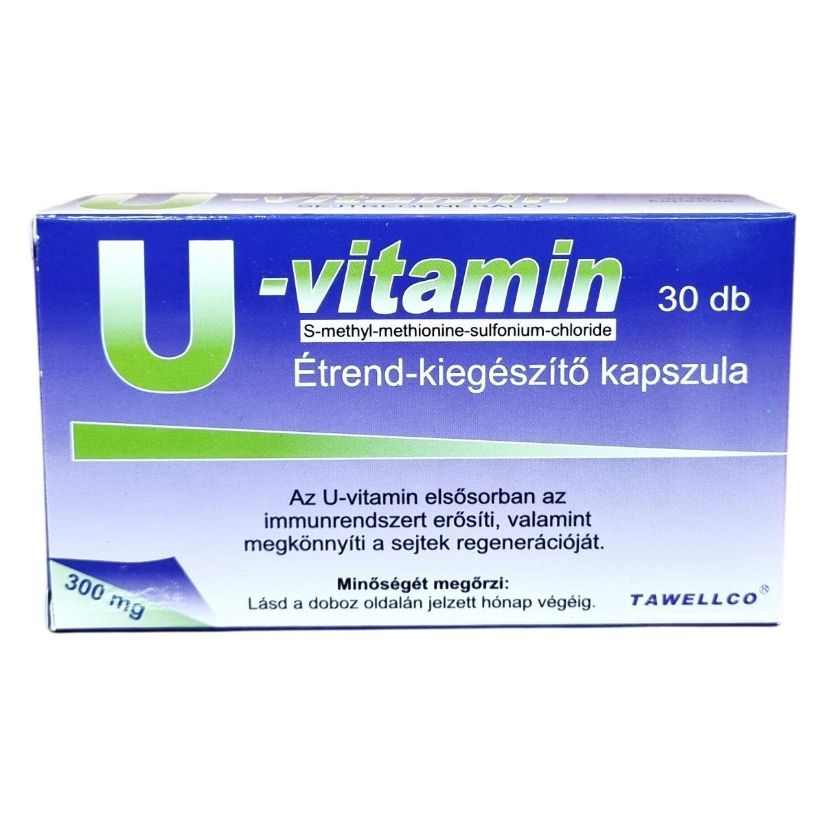 Az U-vitamin az immunrendszer támogatására és a sejtek regenerációjának elősegítésére szolgáló étrend-kiegészítő kapszula.