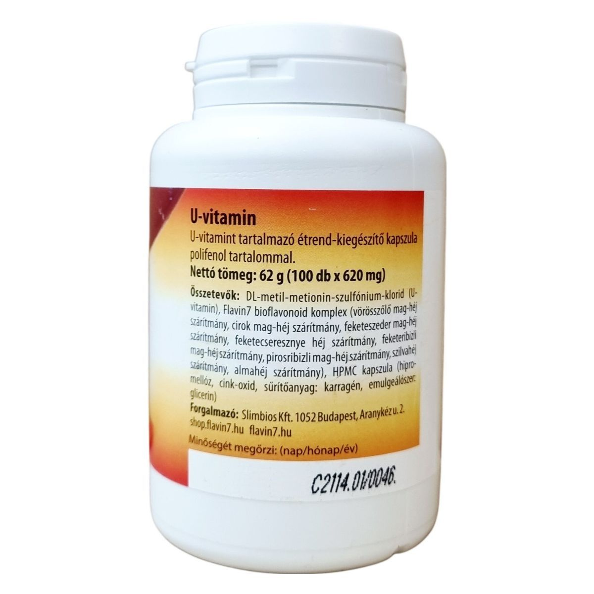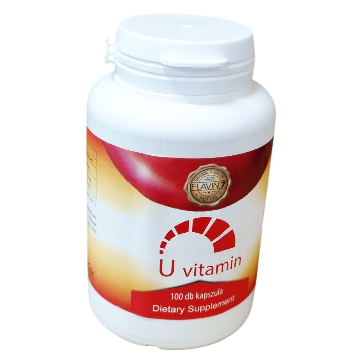 Az U vitamin polifenol tartalmú kapszula a Flavin7 bioflavonoid komplexet tartalmazza, különféle gyümölcsmag- és héjszárítmányokból áll, mint például vörösszőlő, cirok, feketeszeder, feketekcseresznye, feketeribizli, pirosribizli, szilva és alma. A termék netttó tömege 62 g, 100 darab 620 mg-os kapszulát tartalmaz. A kapszula HPMC-ből készült, amely hipromellózt és cink-oxidot tartalmaz, valamint karragén sűrítőanyagot és glicerin emulgeálószert is. A termék elősegítheti a szervezet polifenol-bevitelét egy kiegyensúlyozott étrend részeként.