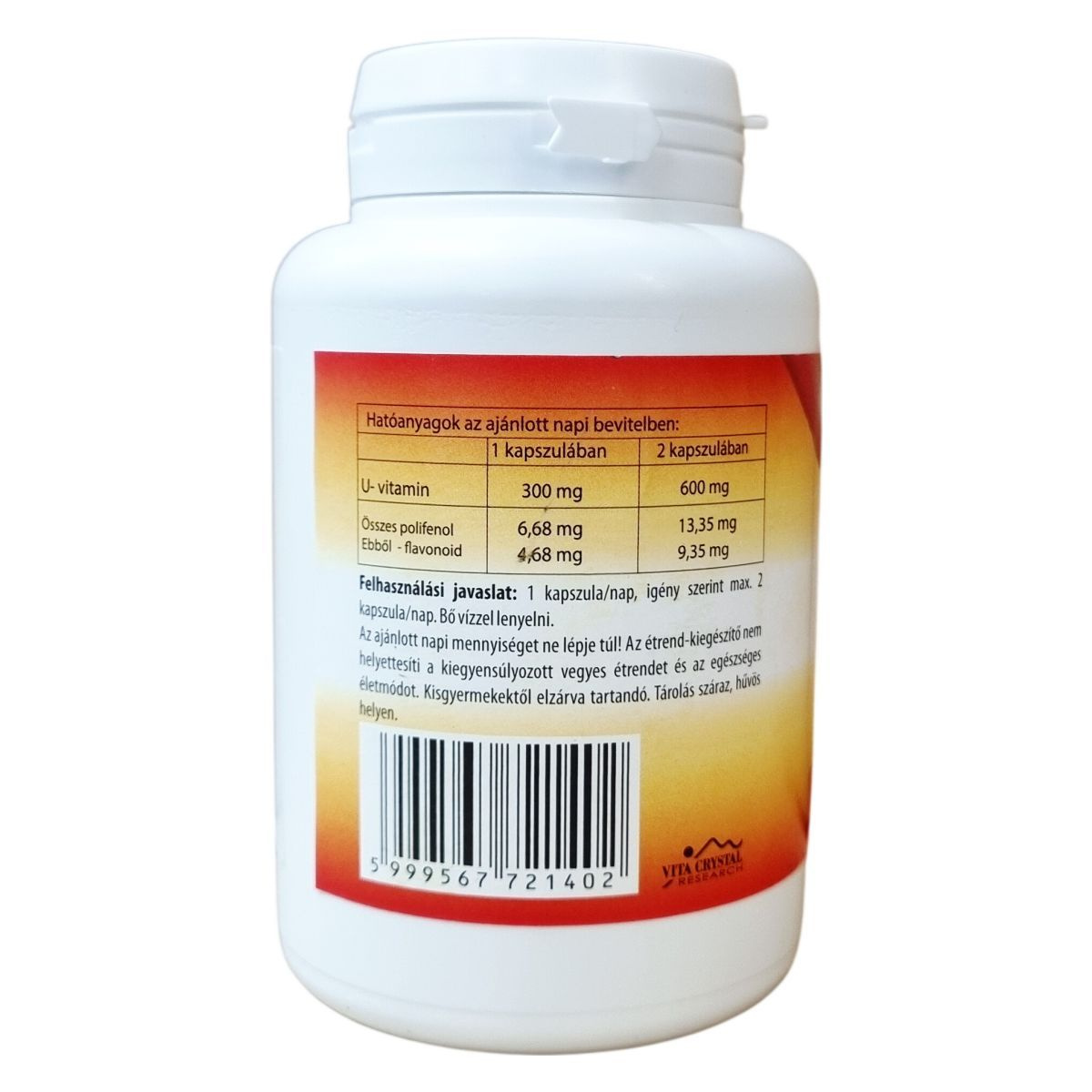 U-vitamint tartalmazó étrend-kiegészítő kapszula polifenol tartalommal.