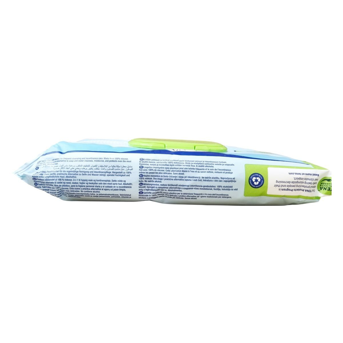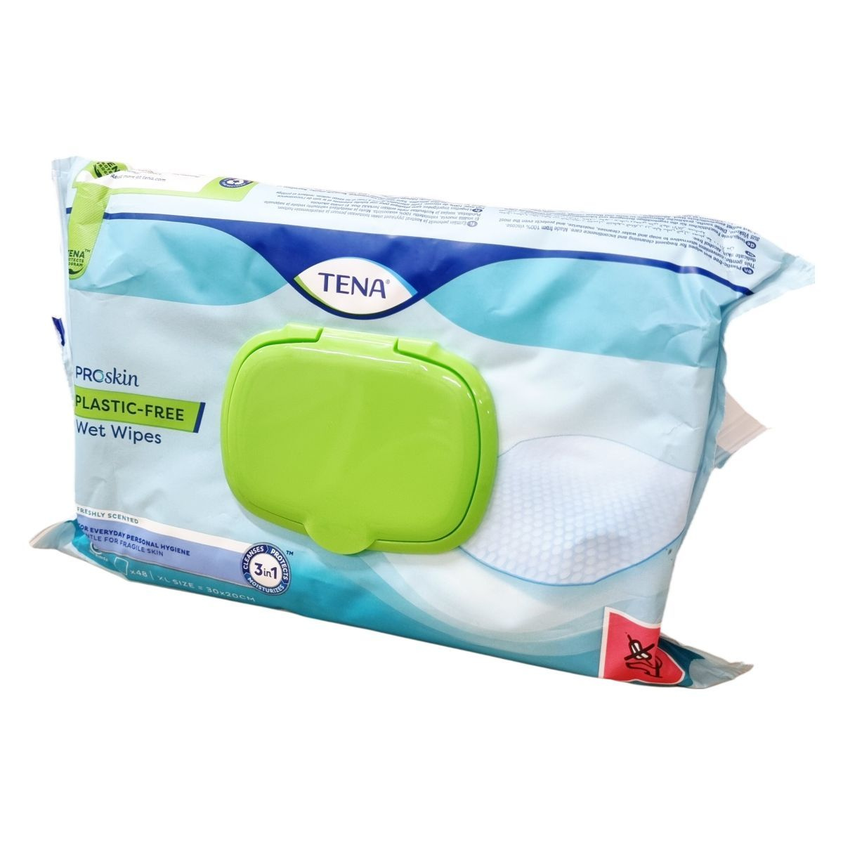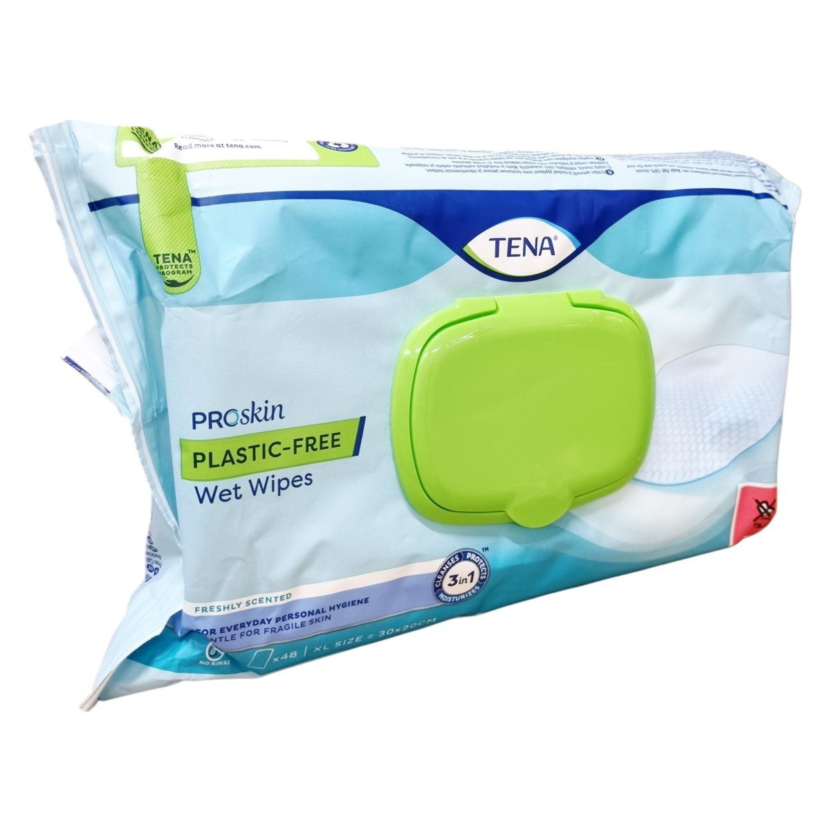 A TENA PROskin plastic-free nedves törlőkendők 100% viszkózból készülnek, környezetbarát alternatívát kínálva a hagyományos törlőkendőkkel szemben. Ez az alkoholmentes, kellemes illatú termék tisztítja, hidratálja és védi a bőrt, különösen az érzékeny területeken, így ideális választás gyakori használatra és inkontinencia ápolásra.