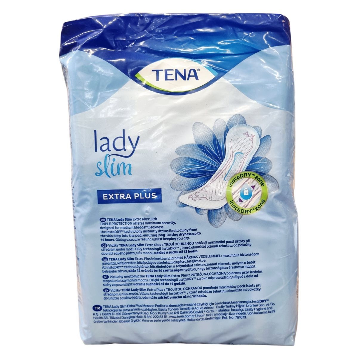 A TENA Lady Slim Extra Plus a TENA Protects Program része, amely folyamatosan törekszik a környezeti lábnyom csökkentésére és az emberek jólétének védelmére. Az instaDRY™ technológia segítségével a betét azonnal magába szívja a nedvességet és mélyen a belső rétegbe zárja, akár 12 órás szárazságot biztosítva. A termék háromszoros védelmet nyújt a nedvesség, szivárgás és kellemetlen szagok ellen. A csomag 16 betétet tartalmaz, amelyek kifejezetten női anatómiai igényekhez igazítottak, így kényelmes viseletet és biztos védelmet nyújtanak középsúlyos vizeletszivárgás esetén. A termék több nyelven is elérhető, és az Európai Unióban készült, a gyártó székhelye Svédország, a gyártás helye Hollandia. A termék használata egyszerű, és a csomagolás megfelelő tájékoztatást nyújt a felhasználóknak. A termék 3 évig megőrzi minőségét a gyártás dátumától számítva. A TENA Protects Program elkötelezett a fenntarthatóság mellett, és folyamatosan fejleszti termékeit környezetbarát megoldások érdekében.