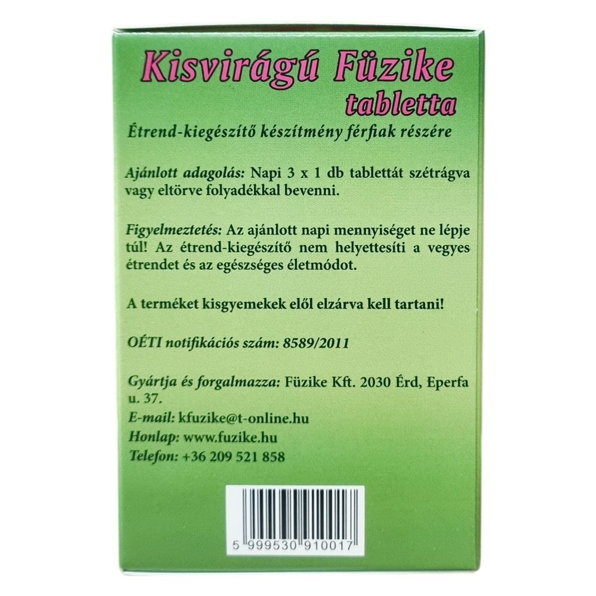 Kisvirágú füzike gyógynövény, mely 3 db tablettában 8,6 mg összflavonoidot tartalmaz.
