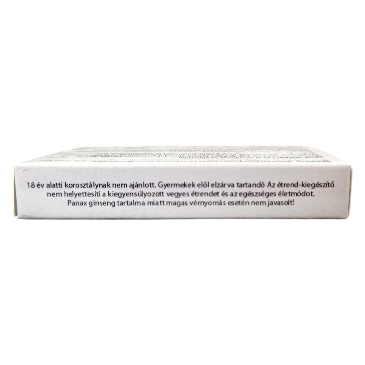 18 év alatti korosztálynak nem ajánlott. Magas vérnyomásban, szív és érrendszeri betegségben szenvedőknek nem javasolt a Panax ginseng tartalma miatt. Várandós nők és szoptatós anyák nem használhatják. A terméket 12 éves kor alatt nem szabad szedni. Gyermekek elől gondosan elzárva tartandó!
