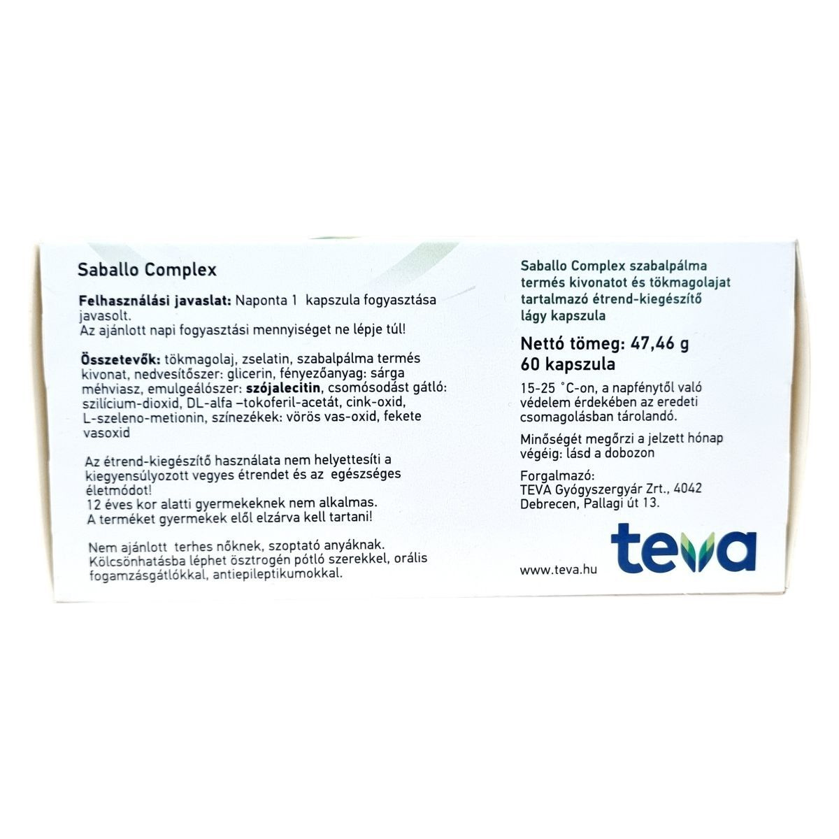 Az étrend-kiegészítő használata nem helyettesíti a kiegyensúlyozott vegyes étrendet és az egészséges életmódot! 12 éves kor alatti gyermekeknek nem alkalmas. A terméket gyermekek elől elzárva kell tartani! Nem ajánlott terhes nőknek és szoptató anyáknak. Kölcsönhatásba léphet ösztrogén pótló szerekkel, orális fogamzásgátlókkal és antiepileptikumokkal.