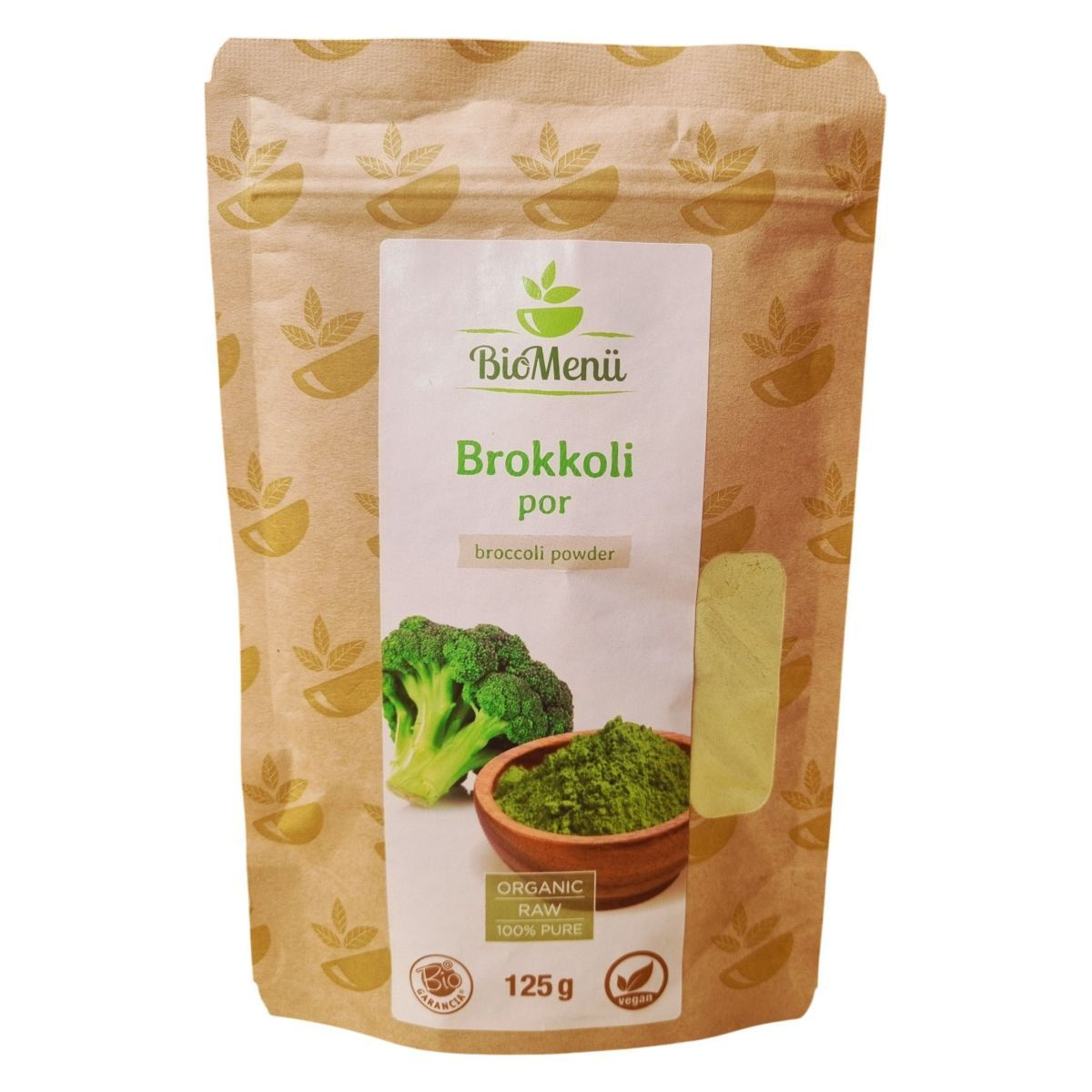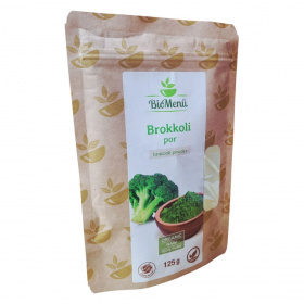 A BioMenü BIO BROKKOLI por egy 100% bio brokkoli por, amely az Európai Unióból származik. A termék adalékként használható különféle ételekhez, mint például levesekhez és zöldséglevekhez. A termék bio, raw és vegán étrendi irányzatoknak megfelelő. A táplálkozási tulajdonságok változhatnak a környezeti feltételektől függően. A termék energia- és tápérték adatai a következők: 819 kJ/196 kcal energia, 2,45 g zsír (ebből 0,45 g telített zsírsav), 17,1 g szénhidrát, 18 g fehérje és 0,1 g só. A terméket jól zártan, száraz, hűvös, fényvédett helyen kell tárolni. Az engedélyszám HU-ÖKO-02.