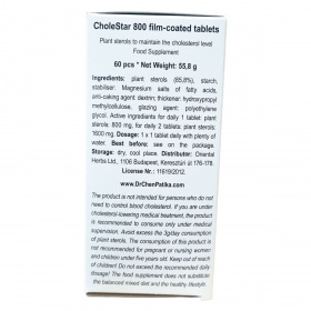 A KoleSztár 800 filmtabletta a normál koleszterinszint fenntartásához készült, aktív hatóanyaga napi egy tabletta esetén 800 mg növényi szterin. Hatékonyabb hatás érhető el napi két tabletta szedésével. A kiegyensúlyozott étrend, részben zöldségek és gyümölcsök rendszeres fogyasztásával, valamint a kései és nehezen emészthető vacsorák kerülésével elősegítheti a koleszterinszint egészséges szinten tartását, ami elengedhetetlen a szív és az érrendszer jó működéséhez. A készítmény fogyasztása mellett fontos megjegyezni, hogy nem helyettesíti a vegyes étrendet és az egészséges életmódot.