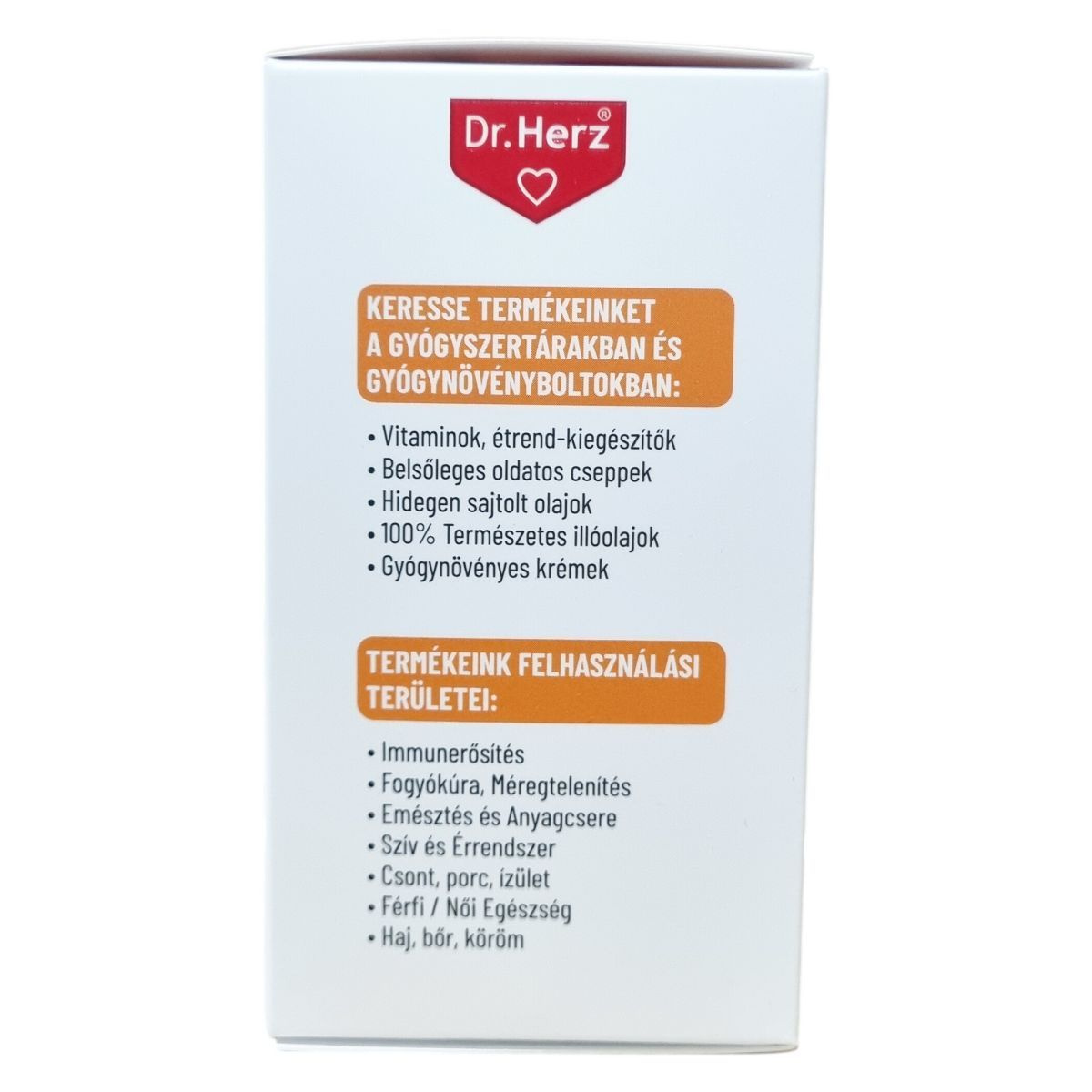 A Dr. Herz egy étrend-kiegészítőket és vitaminokat forgalmazó márka, amely különböző tápanyagokat, növényi kivonatokat és funkcionális összetevőket tartalmazó készítményeket kínál. A Dr. Herz az étrend-kiegészítők piacán ismert márkanév, amely elsősorban a következő termékkategóriákkal kapcsolódik össze: vitaminok és ásványi anyagok, növényi kivonatok, speciális tápanyagkészítmények, funkcionális olajok és komplex étrend-kiegészítők.