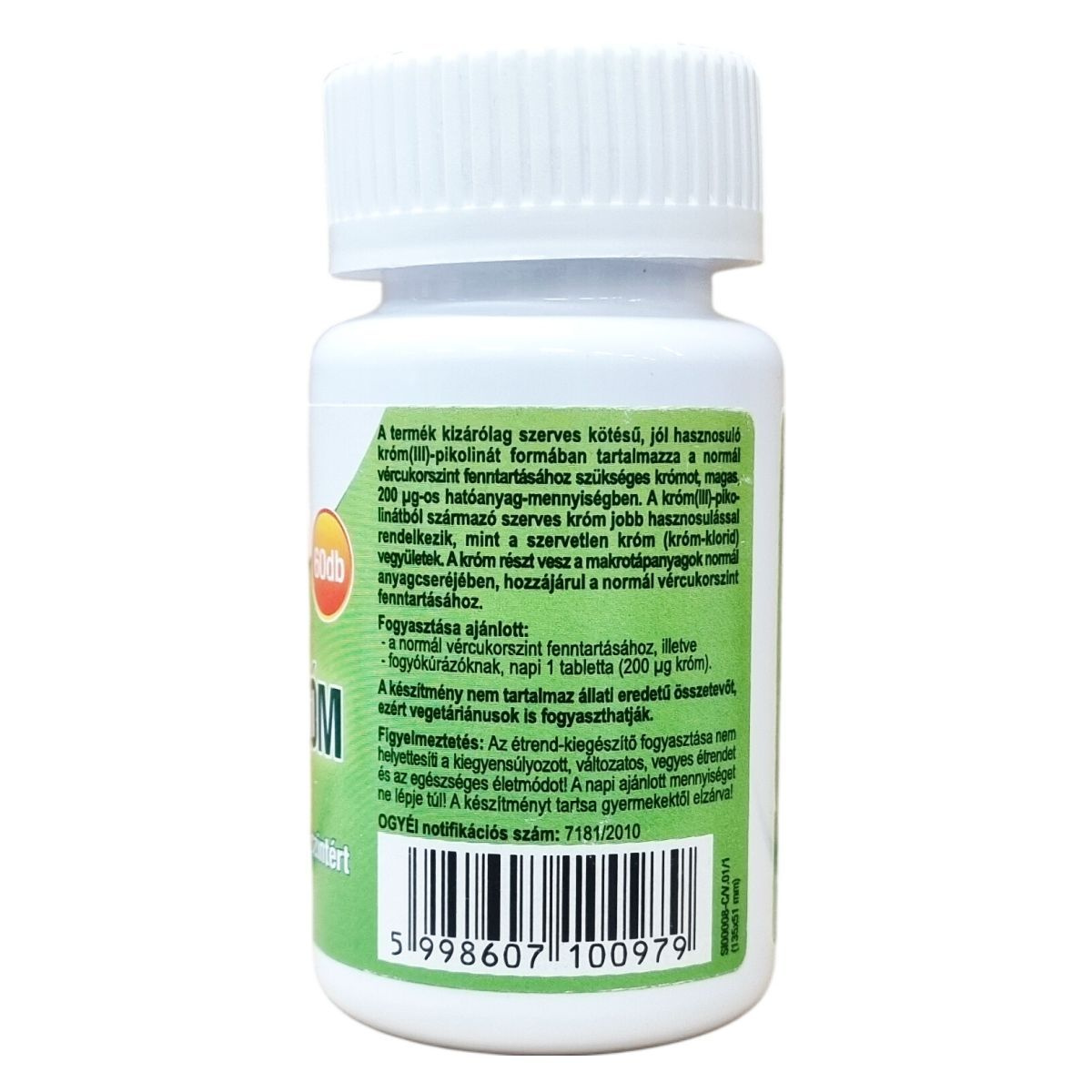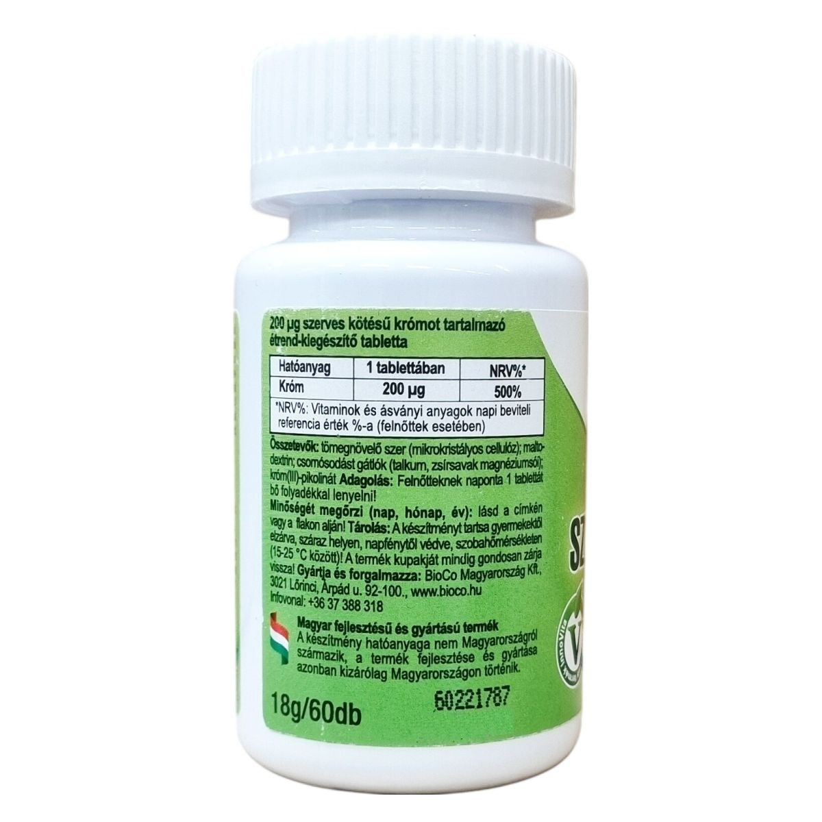 Hatóanyag 1 tablettában: Króm 200 µg - NRV%: 500%
