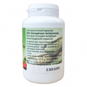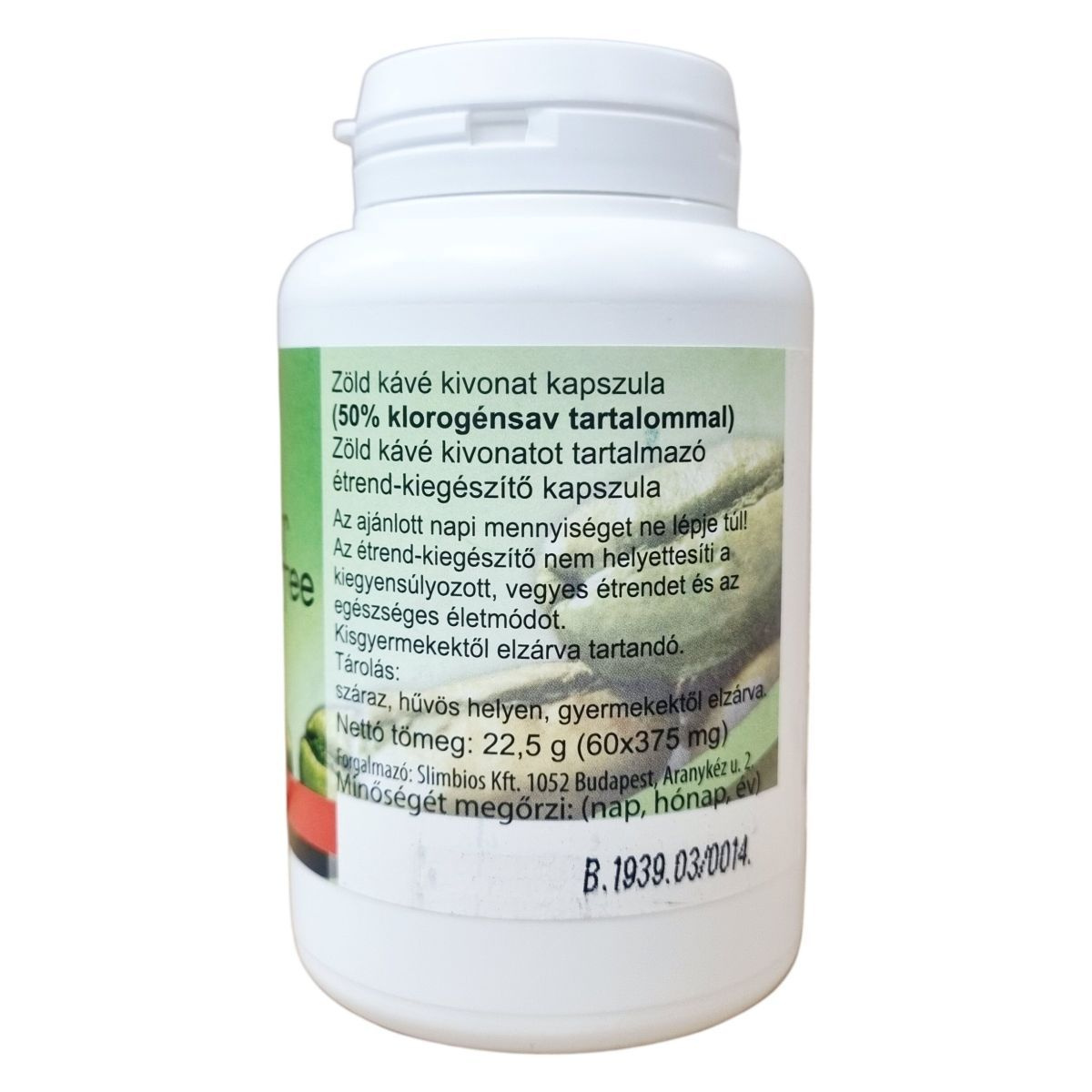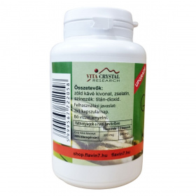Zöld kávé kivonat kapszula (50% klorogénsav tartalommal). Nettó tömeg: 22,5 g (60x375 mg). VITA CRYSTAL RESEARCH. B. 1939.03.0014.