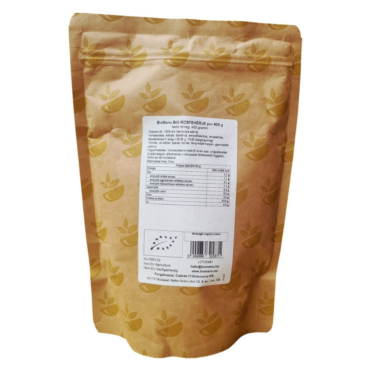 A BioMenü BIO RIZSFEHÉRJE por egy 100% bio rizsből készült, vegán fehérjeforrás, amely hozzájárulhat a napi fehérjebevitel növeléséhez. Kiválóan alkalmas italokhoz, smoothie-khoz és levesekhez.