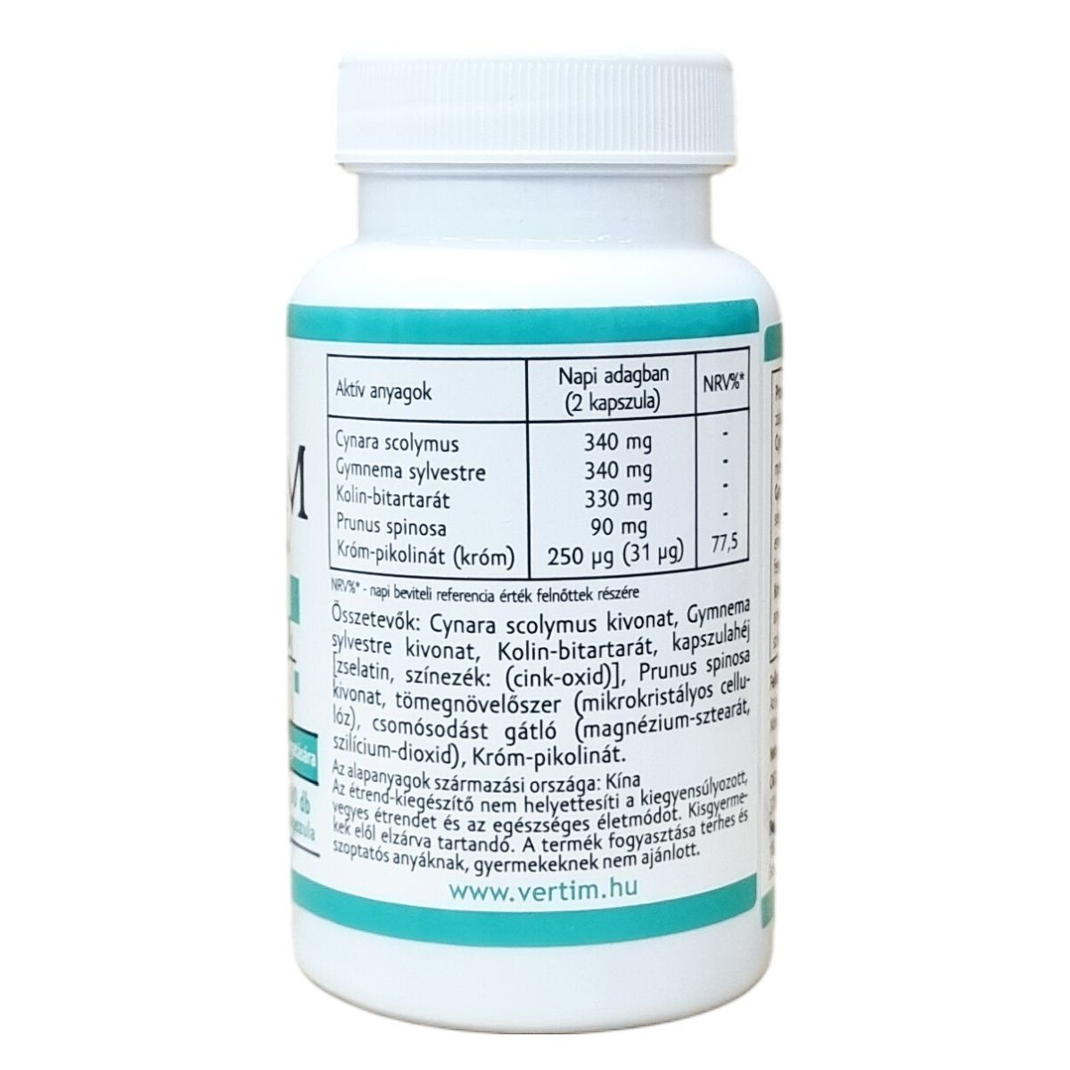 Vertim gyógynövényeket tartalmazó étrend-kiegészítő kapszula a testsúlycsökkentő diéta támogatására.