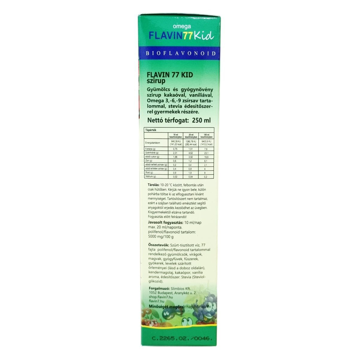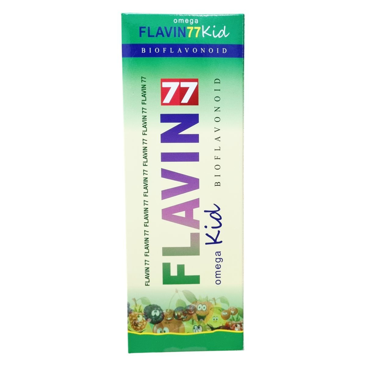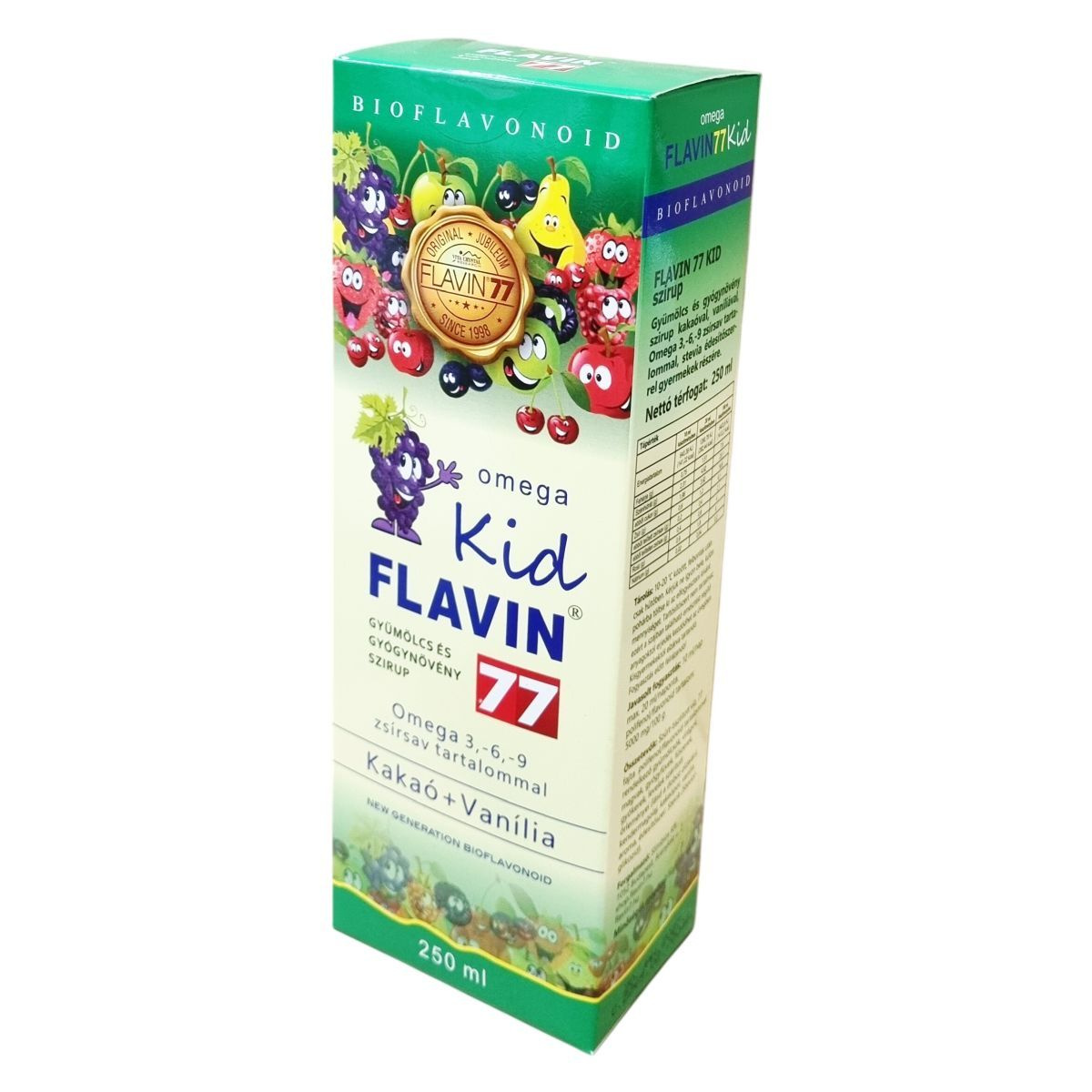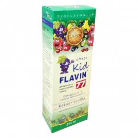 A Flavin 77 Kid egy olyan szirup, amely 77 fajta polifenol- és flavonoid tartalommal rendelkező gyümölcsből, virágból, magból, gyógynövényből, fűszerből, gyökérből és levélből készült. Ezek közé tartoznak többek között alma, bodza, fekete áfonya, homoktövis, akácvirág, kamillavirág, ánizsmag, lenmag, apróbojtorjánfű, fahéjkéreg, kurkuma, borsmenta és gyermekláncfűlevél. A termék kakaóval és vaníliával ízesített, valamint omega 3,-6,-9 zsírsavakat tartalmaz, így komplex flavonoid- és polifenolforrásként szolgálhat gyermekek részére.