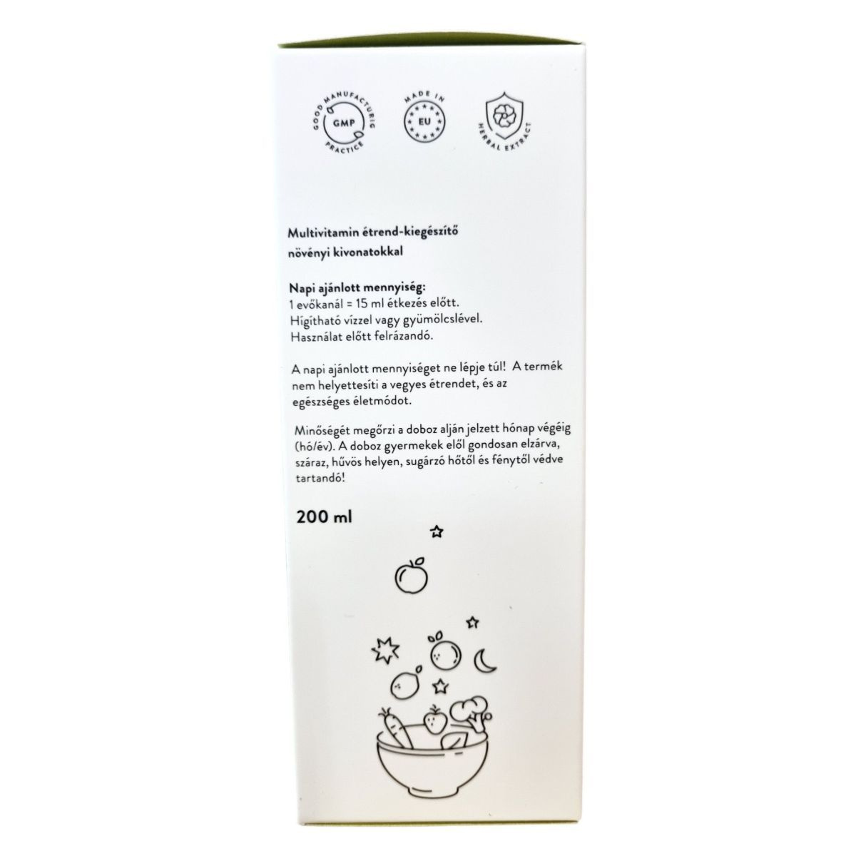 Napi ajánlott mennyiség: 1 evőkanál = 15 ml étkezés előtt. Hígítható vízzel vagy gyümölcslével. Használat előtt felrázandó.