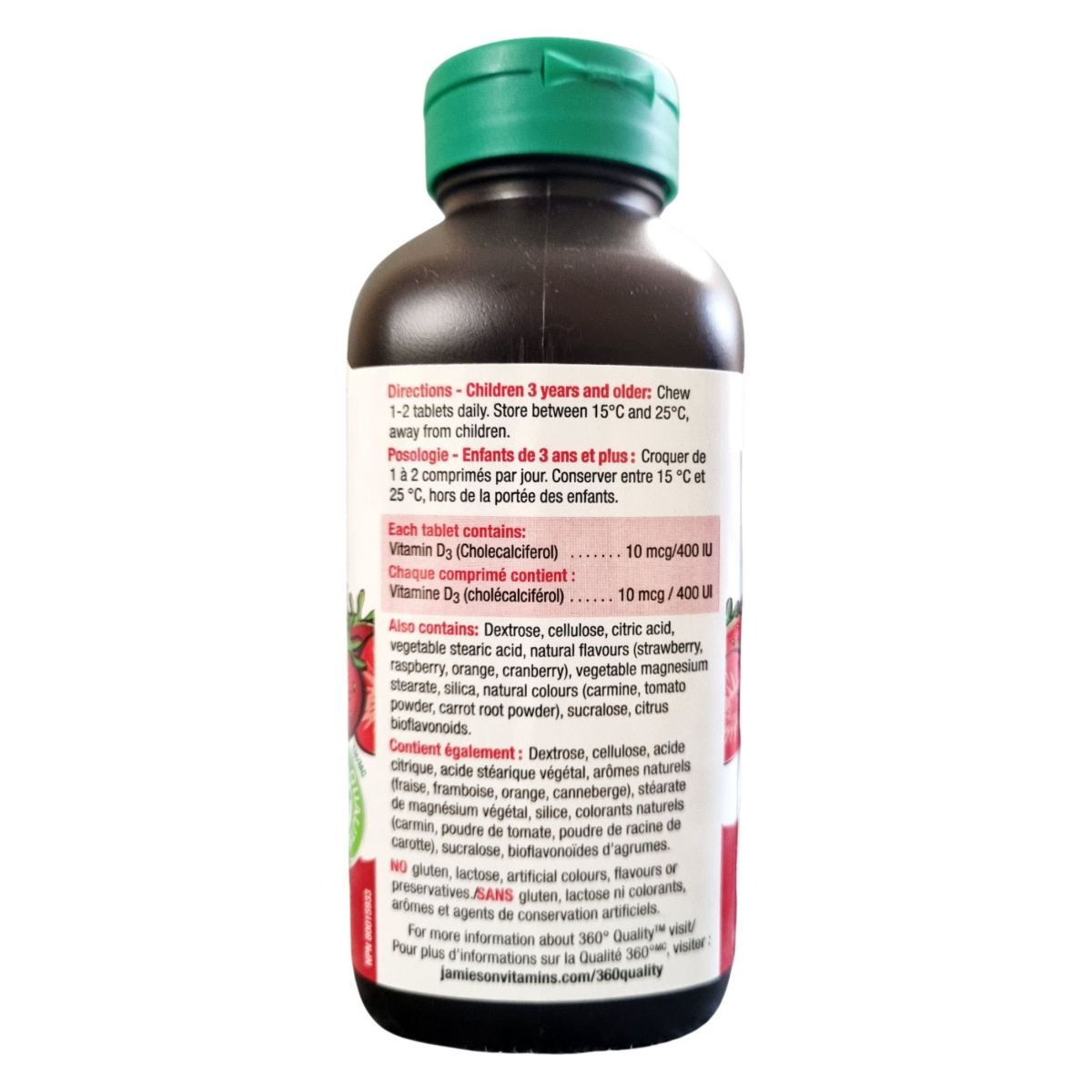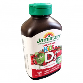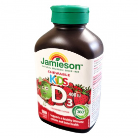 A Jamieson™ KIDS D3 400 IU rágótabletta egy ízletes, eper ízű étrend-kiegészítő, amelyet kifejezetten gyermekek számára fejlesztettek ki. A termék természetes forrásokból származó D3-vitamint tartalmaz, amely hozzájárulhat a gyermekek csontjainak megfelelő növekedéséhez és fejlődéséhez, valamint az immunrendszer támogatásához. A tabletták panda alakúak, ami vonzóvá teheti a gyermekek számára. A termék nem tartalmaz glutént, laktózt, mesterséges színezékeket és ízesítőket, így különösen alkalmas érzékenyebb gyermekek számára is. A terméket 3 éves kortól ajánlják, napi 1-2 tabletta fogyasztásával.
