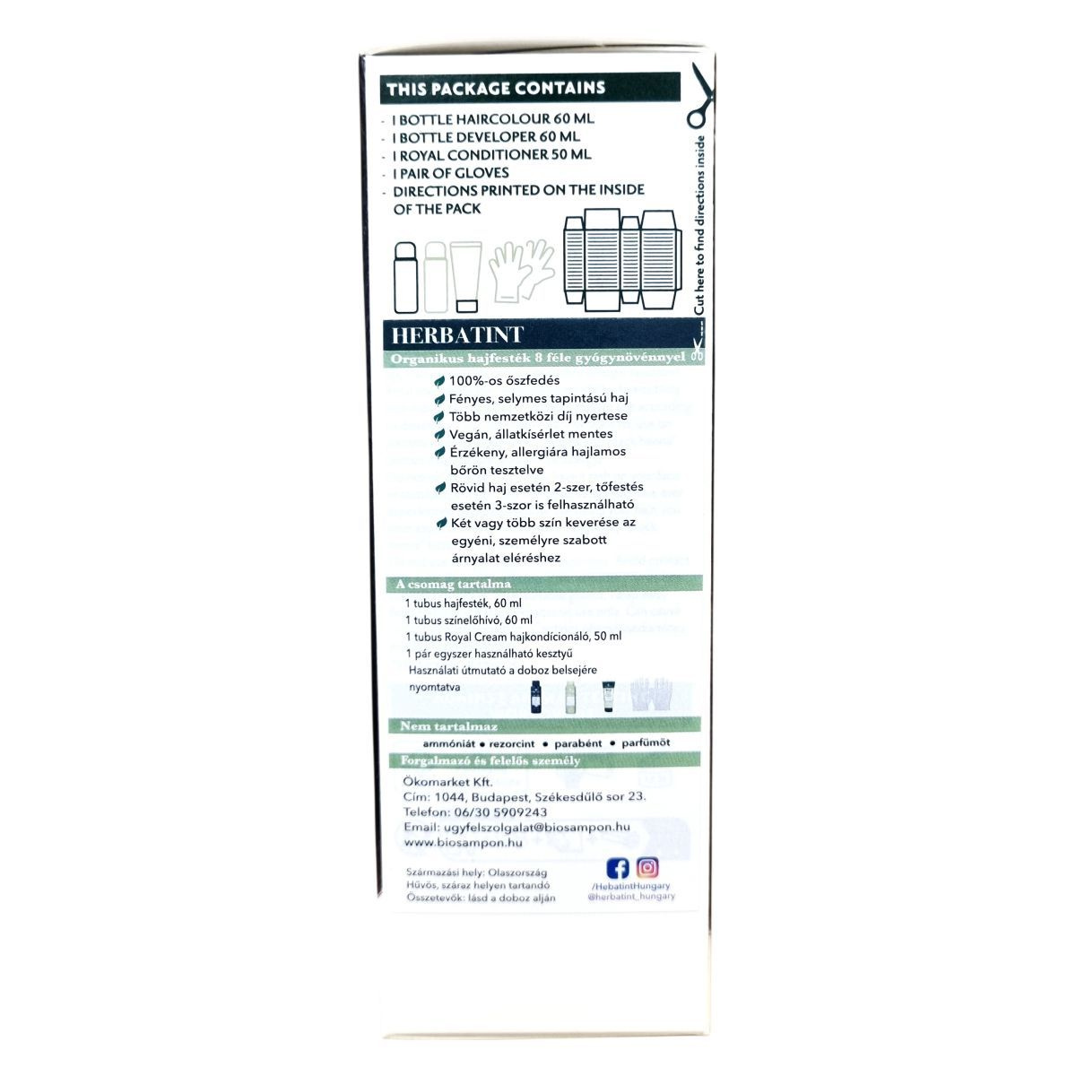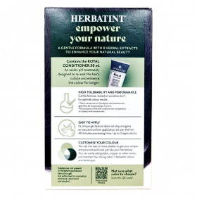 A Herbatint permanent haircolour gel egy gél állagú, csepegésmentes hajfesték, amely egyenletes felvitelt biztosít. A csomag tartalmaz egy 60 ml-es hajfestéket, egy 60 ml-es előhívót, egy 50 ml-es Royal Conditioner kondicionálót és egy pár kesztyűt. A Royal Conditioner savas pH-jú kezelés, amely segít a haj kutikulájának visszazárásában és a szín tartósságának növelésében. A feldolgozási idő 40 perc, a termék akár két alkalommal is felhasználható.