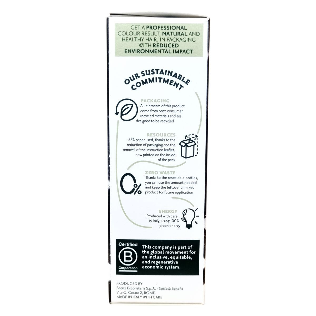 A csomagolás újrahasznosított anyagokból készül, csökkentett papírfelhasználással. Újrazárható flakonjai lehetővé teszik a maradék, nem összekevert termék későbbi felhasználását. Olaszországban gyártva, 100% zöld energiával.